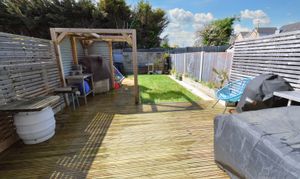 Step into the serene outdoors of this residence and discover a generous approximately 45' west-facing rear garden. A beautifully designed patio area leads to a vast lawn, providing a perfect setting for outdoor gatherings. A small lawned area and a path leading to the front door add to the charm of this property. Complete with off-street parking for at least two vehicles, this home perfectly balances indoor sophistication with outdoor tranquillity, offering a delightful living experience.