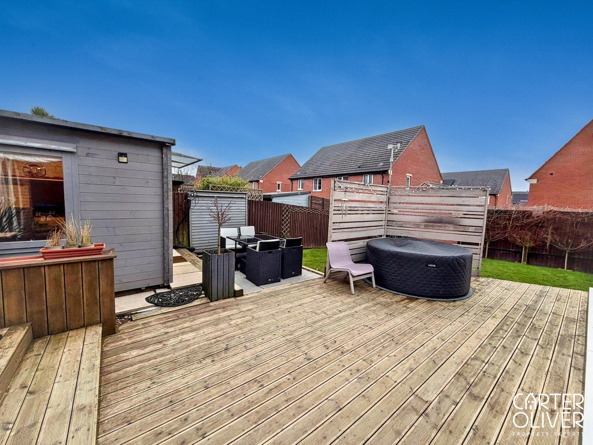 There is a purpose-built outdoor home office setup, Ideal for for working from home without being disturbed by family life. The large utility room offers additional storage, complete with a washer, dryer, and outdoor access, ensuring daily living is effortless and organised. Outdoor living is at its best with a great garden, large decked patio, lawn, privacy fencing, and a hot tub for ultimate relaxation. The outdoor seating areas and conservatory are perfect for entertaining family or friends.