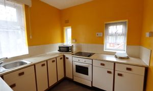 Ascending to the first floor of this maisonette flat, residents will find a generously sized layout. An inviting hallway leads to two comfortable bedrooms; one expansive room features built-in wardrobes while the other provides flexibility for various furniture arrangements. The kitchen, equipped with free-standing cooker, ample wall and base units, and optional under-counter fridge space, A well-maintained bathroom with basic WC and electric shower over the bath adds convenience to the floor plan.