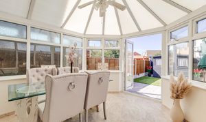 This well-proportioned freehold home features two double bedrooms, which are complimented by a good sized lounge leading to a conservatory with UPVC French Doors to the rear garden , a modern white gloss fitted kitchen with integrated appliances and a luxury three piece bathroom to first floor.