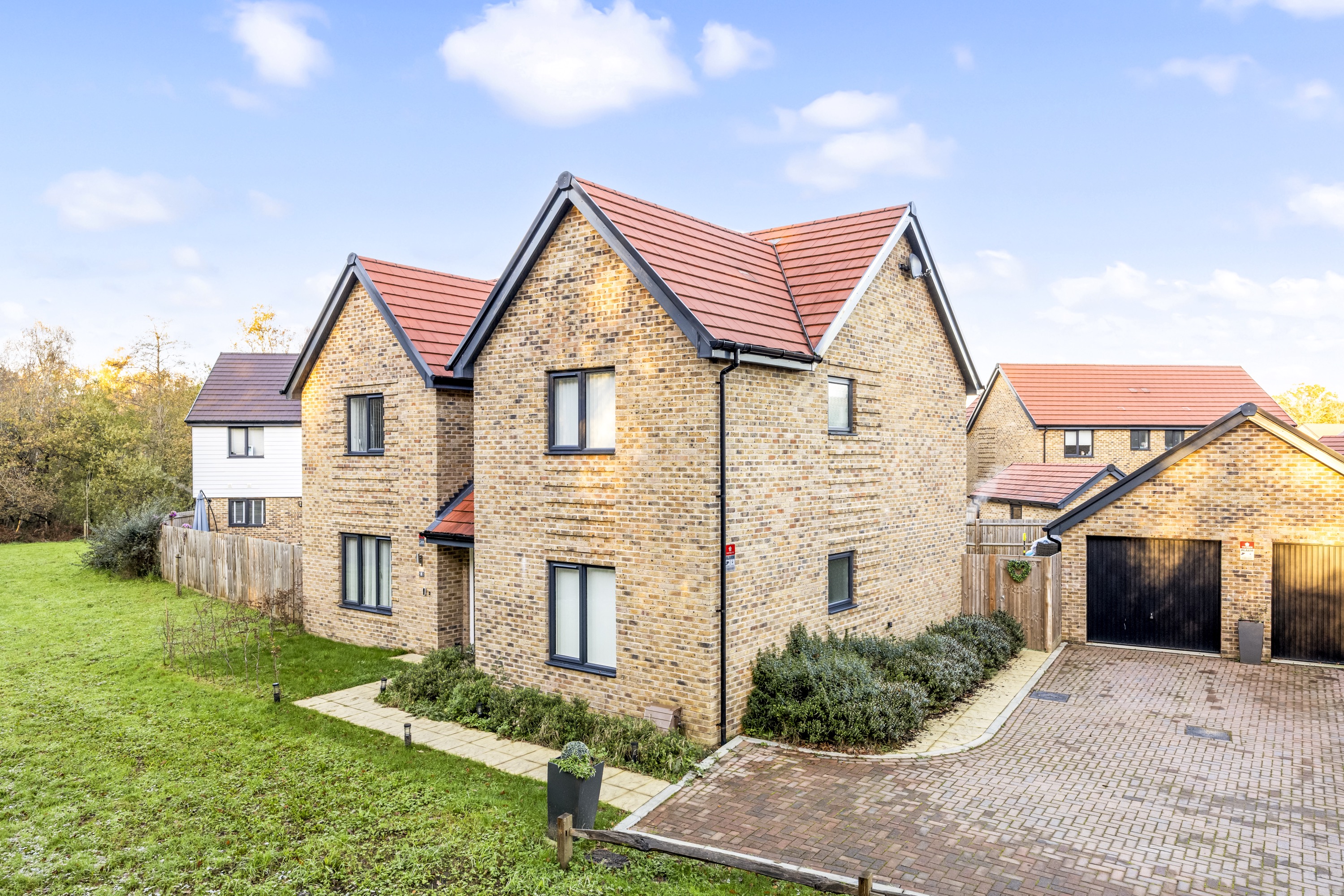 GUIDE PRICE £775,000 - £800,000 -This attractive and impressive four-bedroom detached family residence sits proudly on a generous corner plot within the highly sought-after Heathy Wood development. Built by Taylor Wimpey to their well-regarded Ransford design, the property is perfectly positioned opposite mature woodland, offering a peaceful outlook and a strong sense of space and privacy rarely found on modern developments.