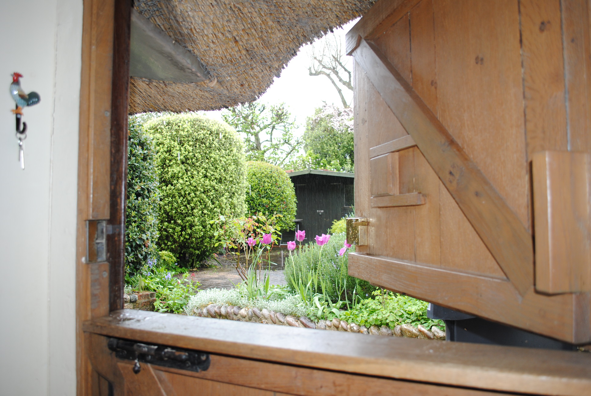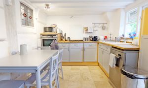 The kitchen is thoughtfully arranged and full of character, offering a practical layout while retaining its traditional charm. Overlooking the rear garden, it enjoys excellent natural light and direct access outside via a superb oak stable door.