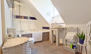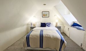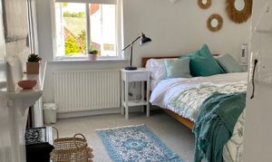 Stairs rise to the first floor, where a light and airy principal bedroom is positioned to the front of the property. A generously proportioned family bathroom serves this level. On the second floor, a further well-sized bedroom benefits from a dormer window with views to the rear, providing a peaceful and private retreat.