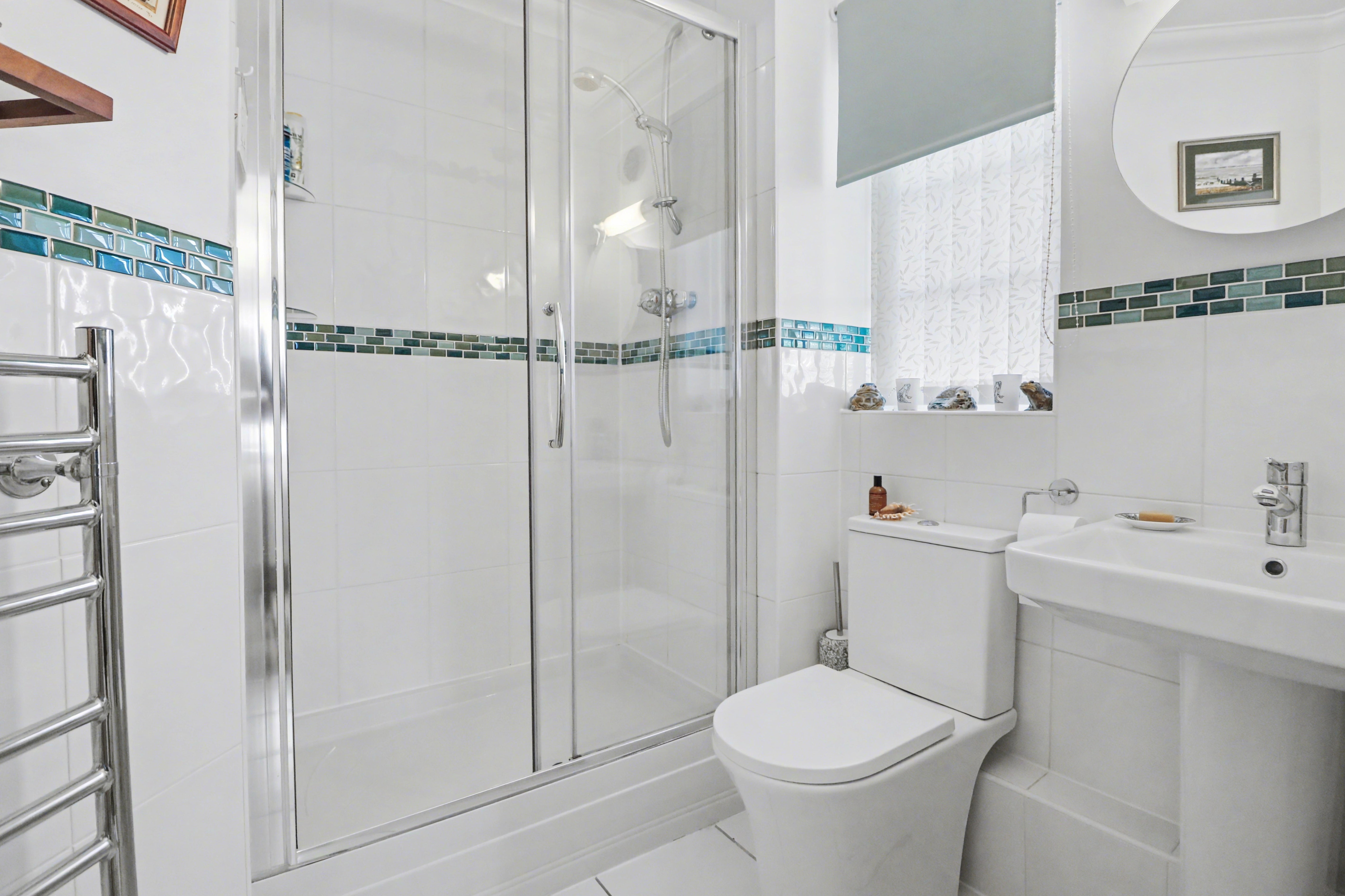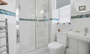 There are two, beautifully presented double bedrooms, the master of which has a fitted wardrobe and modern en-suite shower room, whilst the second bedroom benefits from a built-in cupboard.