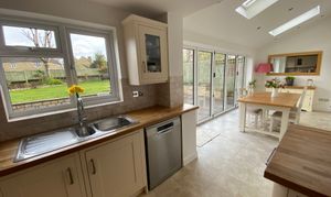 - Folding doors from the kitchen open onto a South facing dining terrace and fully enclosed rear garden