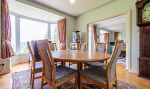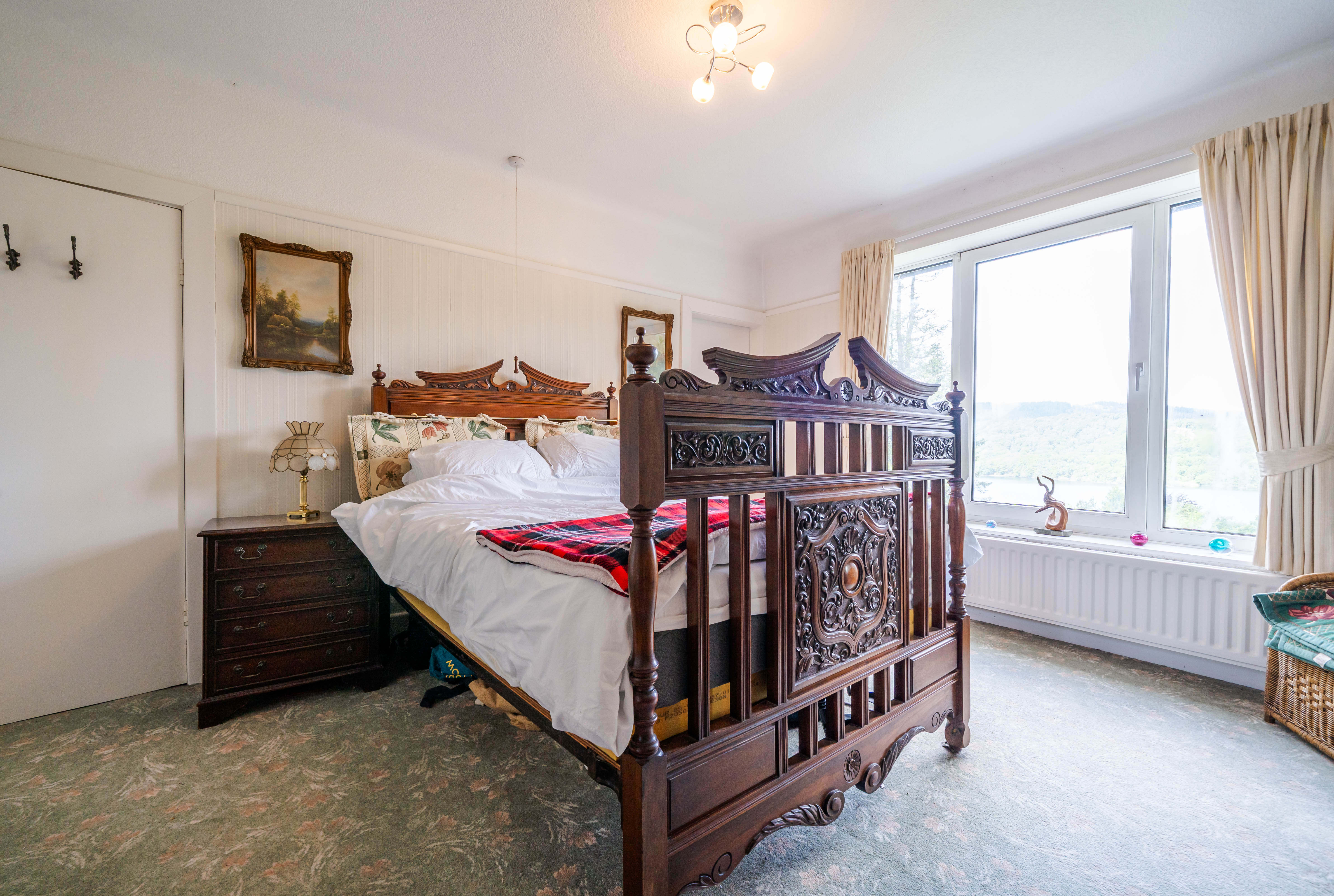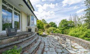 This detached residence boasts two reception rooms including a substantial sitting room with a feature bay window with lake views and patio doors leading onto an elevated paved seating area also benefiting of lake and mountain views. The property features a fitted kitchen with a pantry and access to the charming sunroom, creating a seamless flow between indoor and outdoor living spaces. The four double bedrooms offer ample space for a growing family, with one bedroom benefitting from an en-suite bathroom.