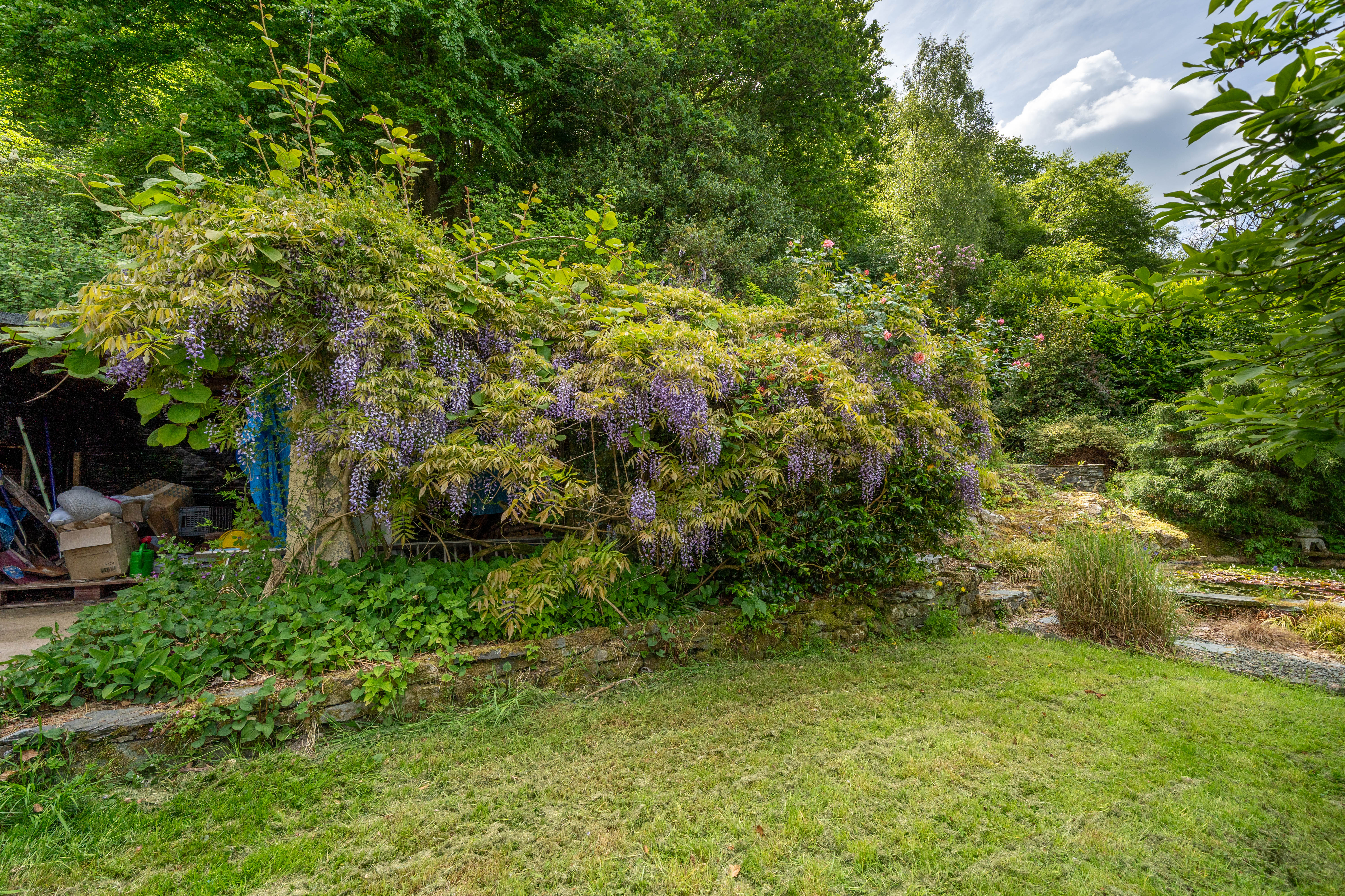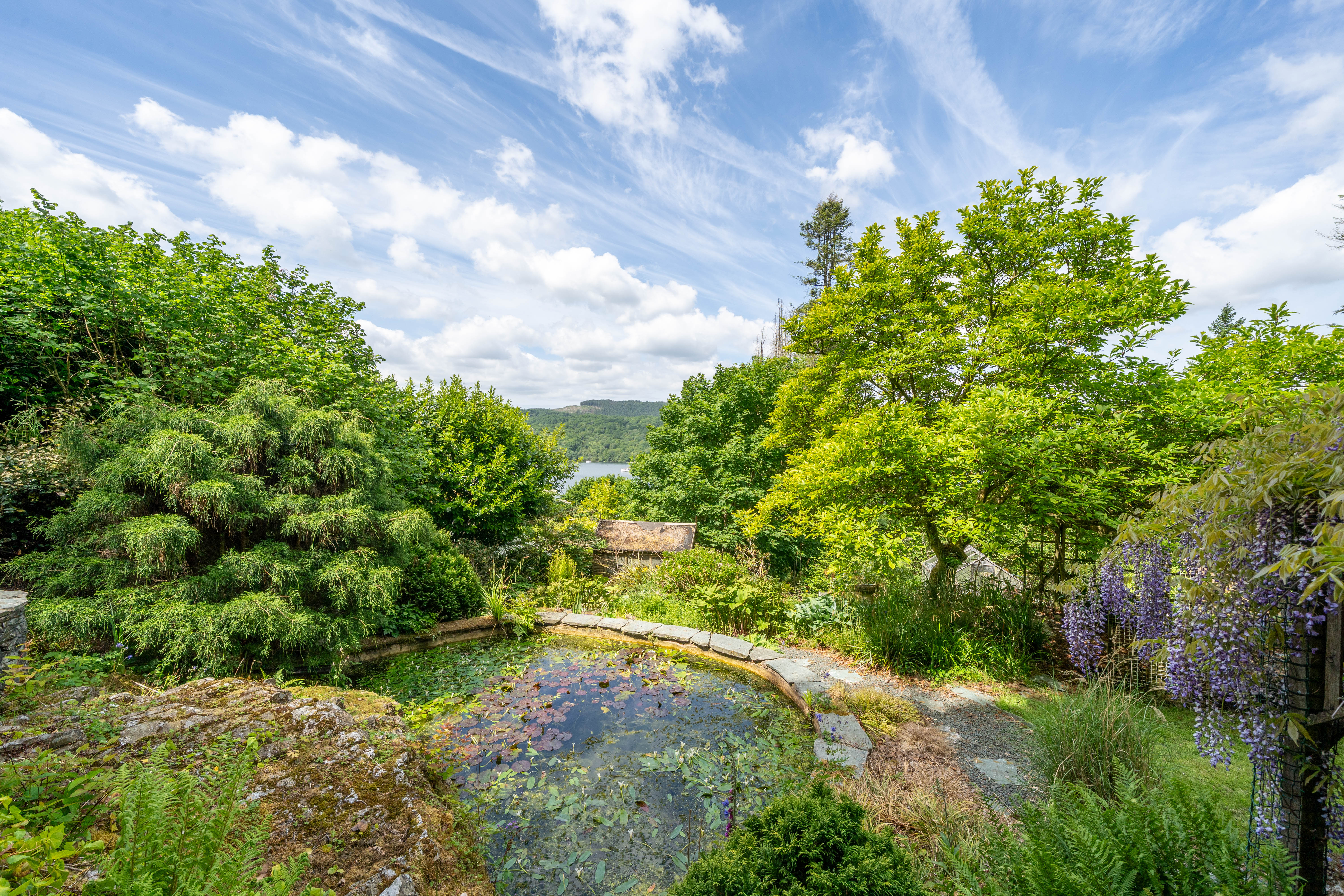 The grounds of this property are both extensive and beautiful. With up to 4 acres of woodland, landscaped gardens with lawns, paved patio seating area, beautiful ponds, established trees and hedges throughout and plenty of planted beds. The gardens are private with no one over looking the grounds. A jetting can be found at the lake but is in need of some restoration. There is ample driveway parking and garage parking.