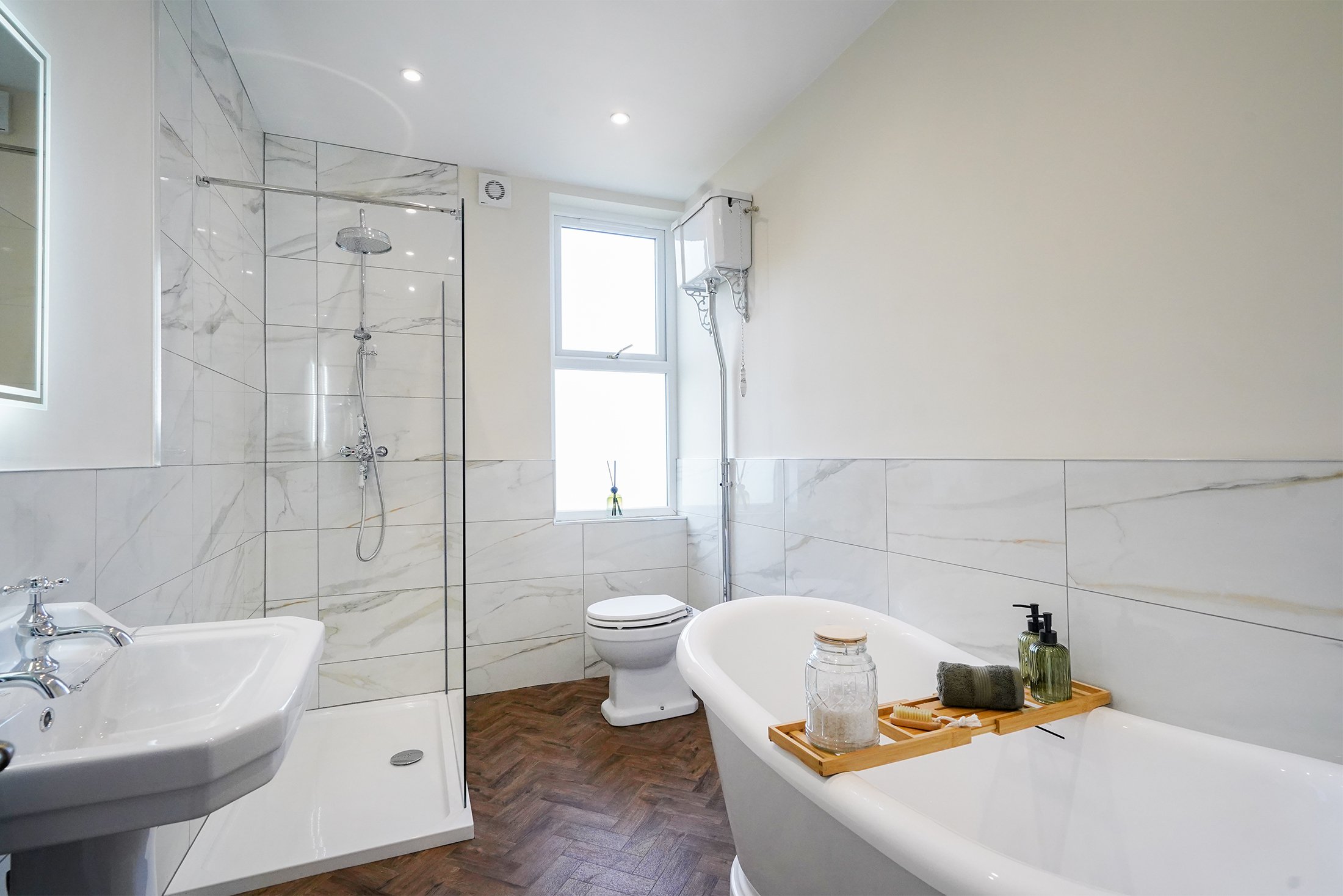 From the moment you enter the welcoming hallway, the incredible standard of finish and attention to detail is clear to see. A bay-windowed lounge with an original fireplace is flooded with natural light and well-complemented by the open-plan kitchen/dining room. A range of integrated appliances, bespoke cabinetry and quartz worktops combine to create a fabulous space to bring all the family together. You also have the benefit of a full basement conversion, with two further rooms offering total flexibility, alongside a fitted utility room.