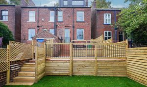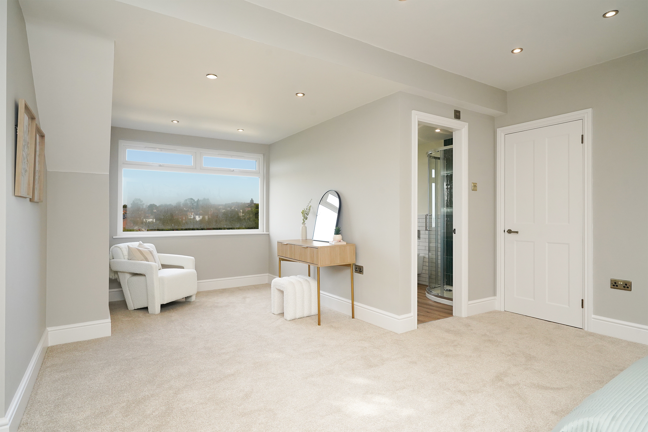 The bedrooms are split across three floors and neutrally decorated, allowing a prospective purchaser to style according to their taste. The first floor features two generous double bedrooms alongside a study/nursery and a four-piece family bathroom. The second-floor principal bedroom incorporates a luxurious en-suite, and you can enjoy far-reaching views across Sheffield. To the rear is an easily managed landscaped garden, with two patios leading down to a lush lawn.