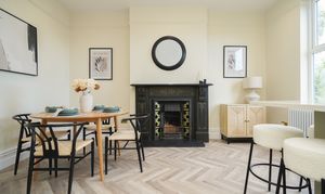 - Open-Plan Kitchen/Dining Room With Integrated Appliances & Feature Fireplace
