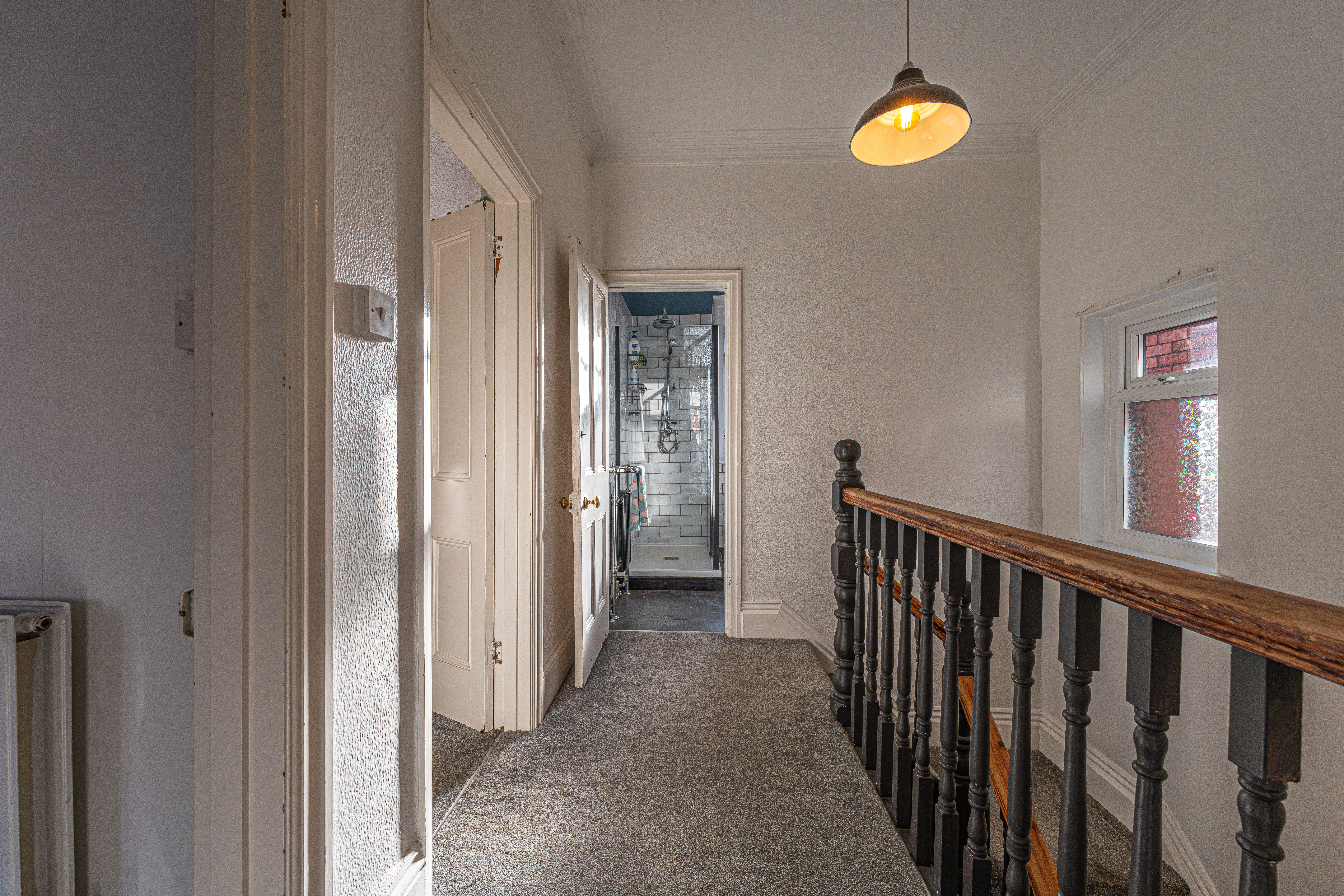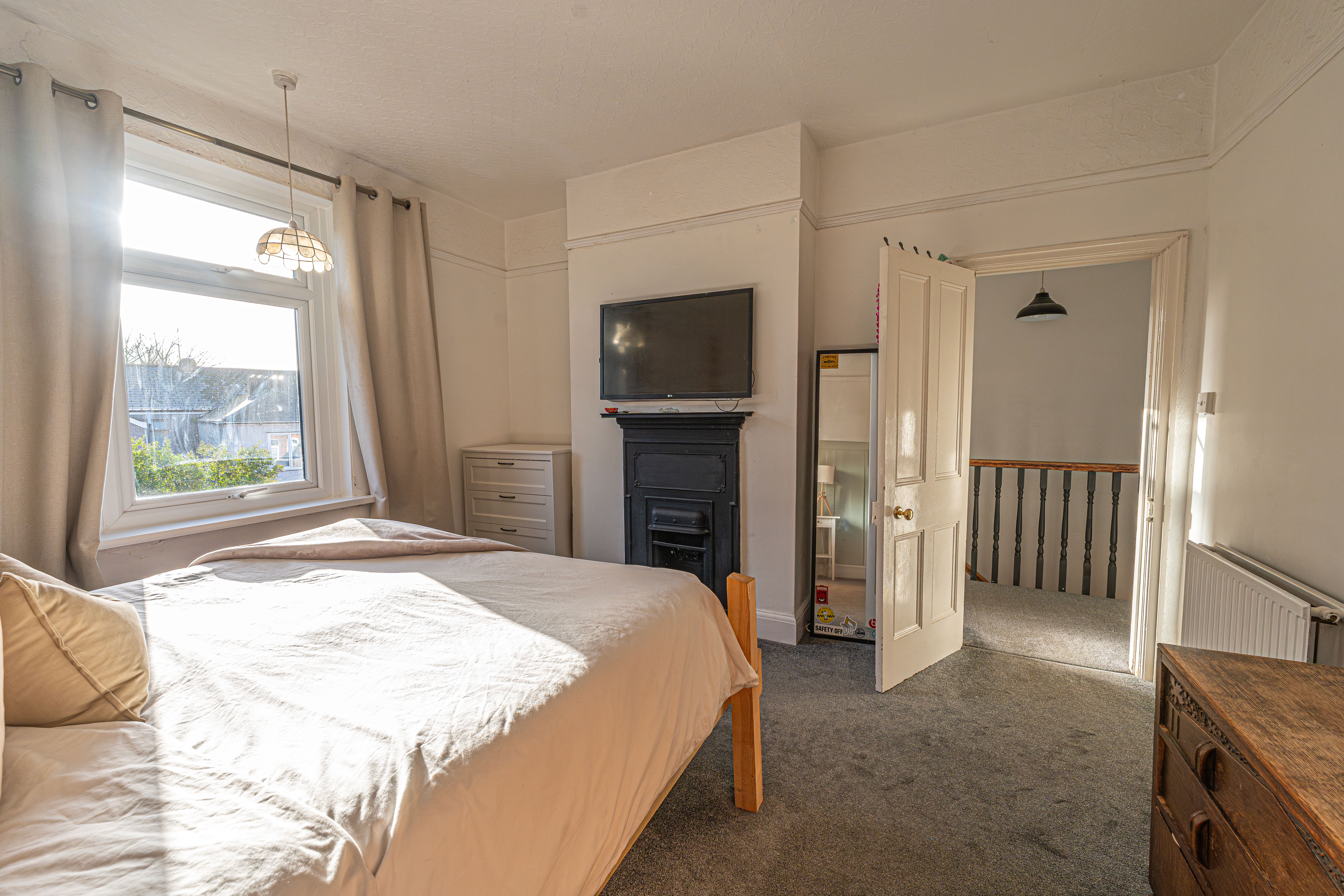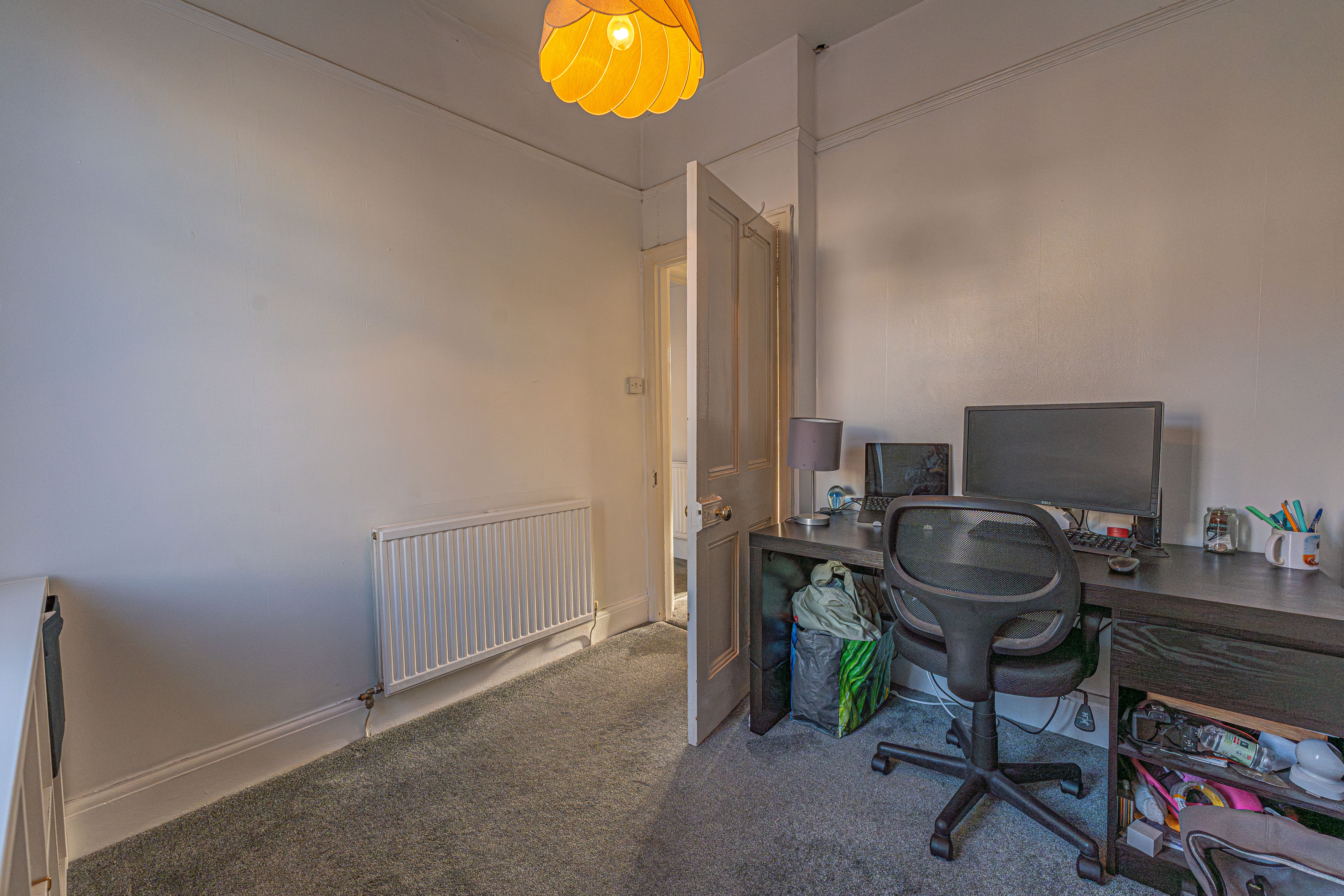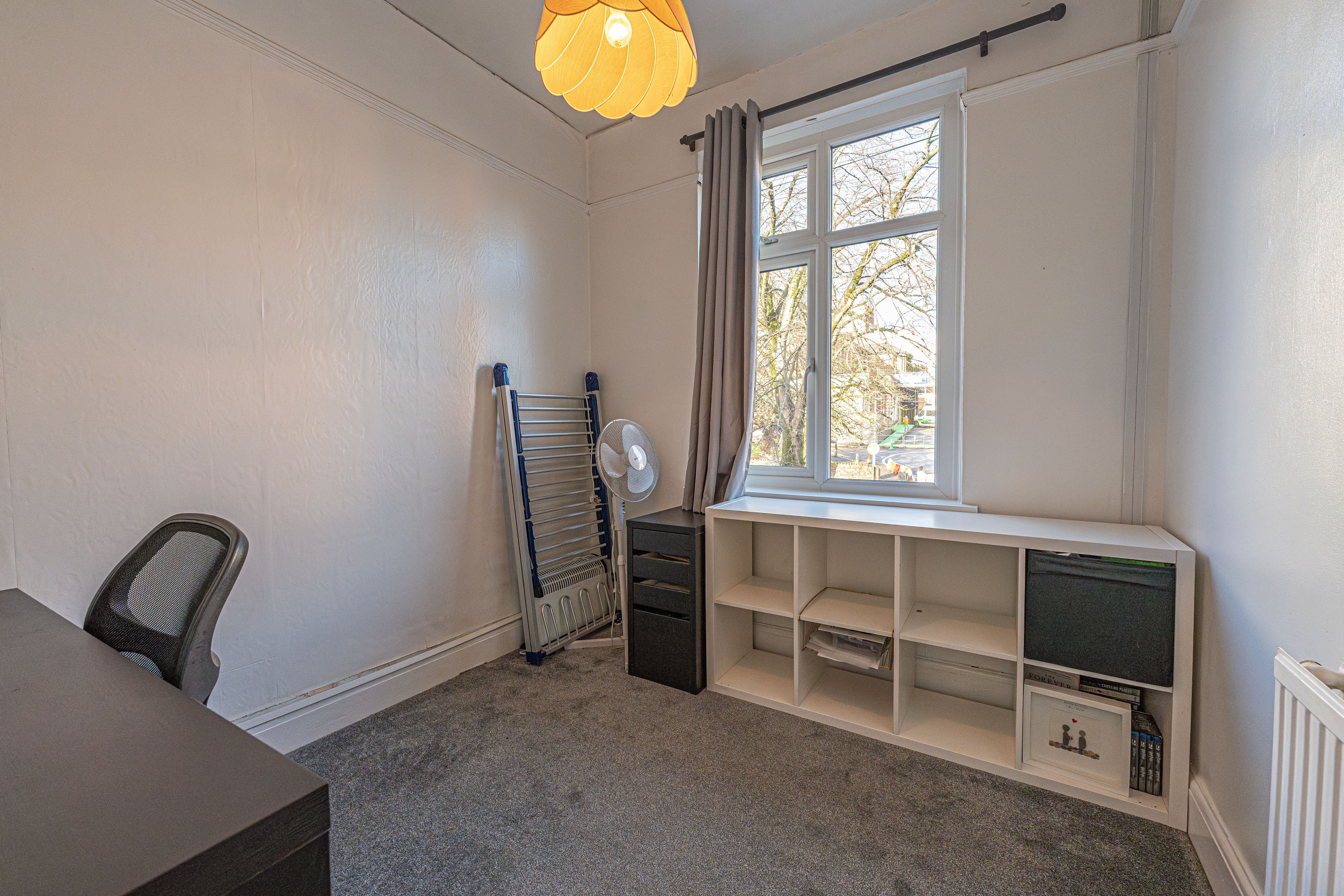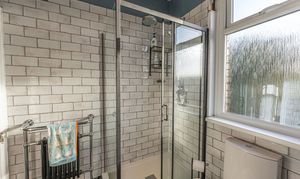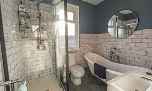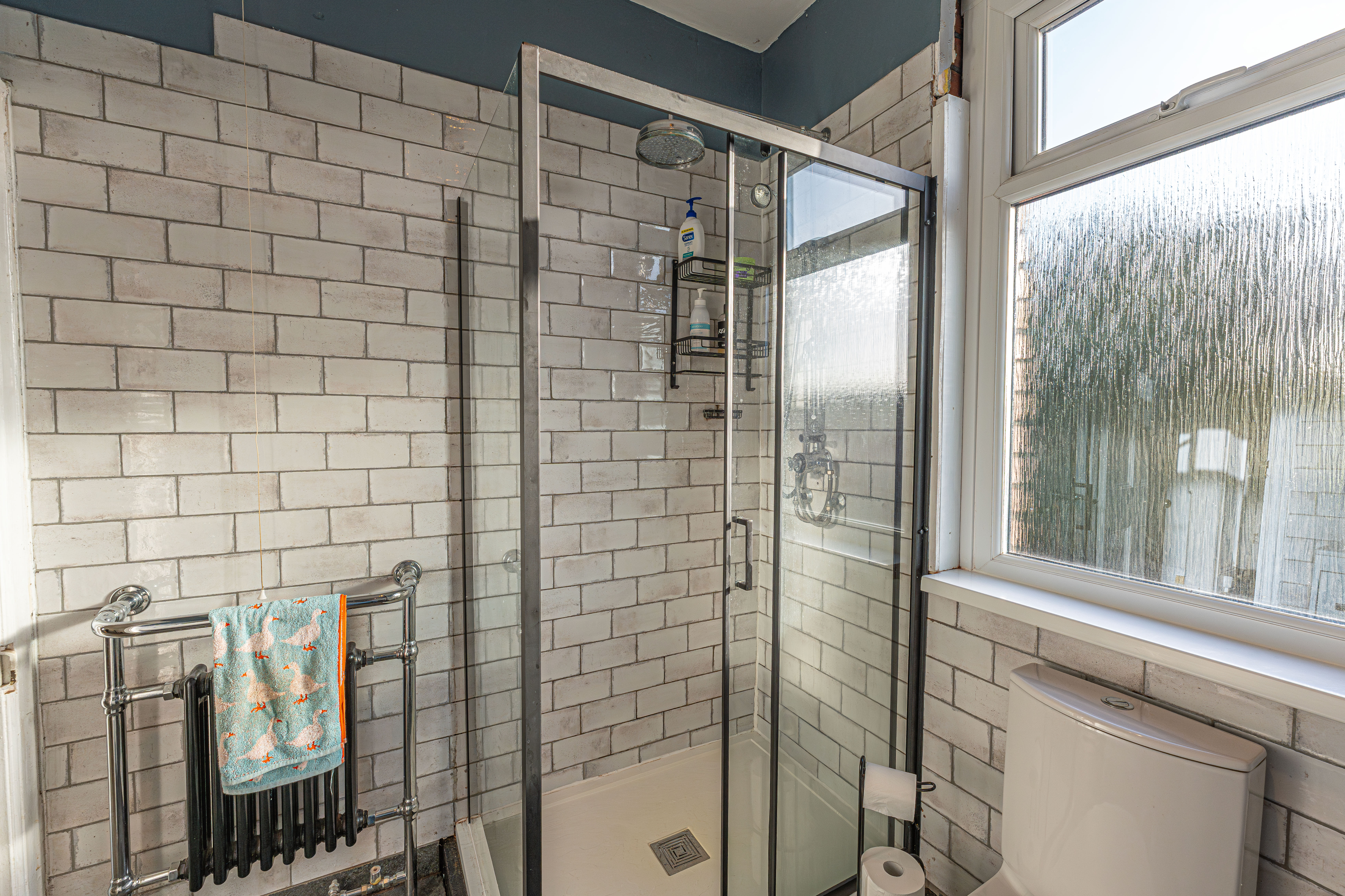Ascending to the first floor, we can find three bedrooms, which are all well proportioned double rooms. The front facing bedroom also has the glorious bay windows from the floor below, and is fashioned with an open wardrobe rail. The third bedroom also highlights a great versatile space, ideal for a home office, dressing room or nursery. The sleek family bathroom is also located from the first floor hallway, and offers both a freestanding bath suite and a separate rainfall shower unit, surrounded by a gorgeous tile decor. The property also features a partially boarded attic for overflow storage and potential for an attic conversion for additional living space.