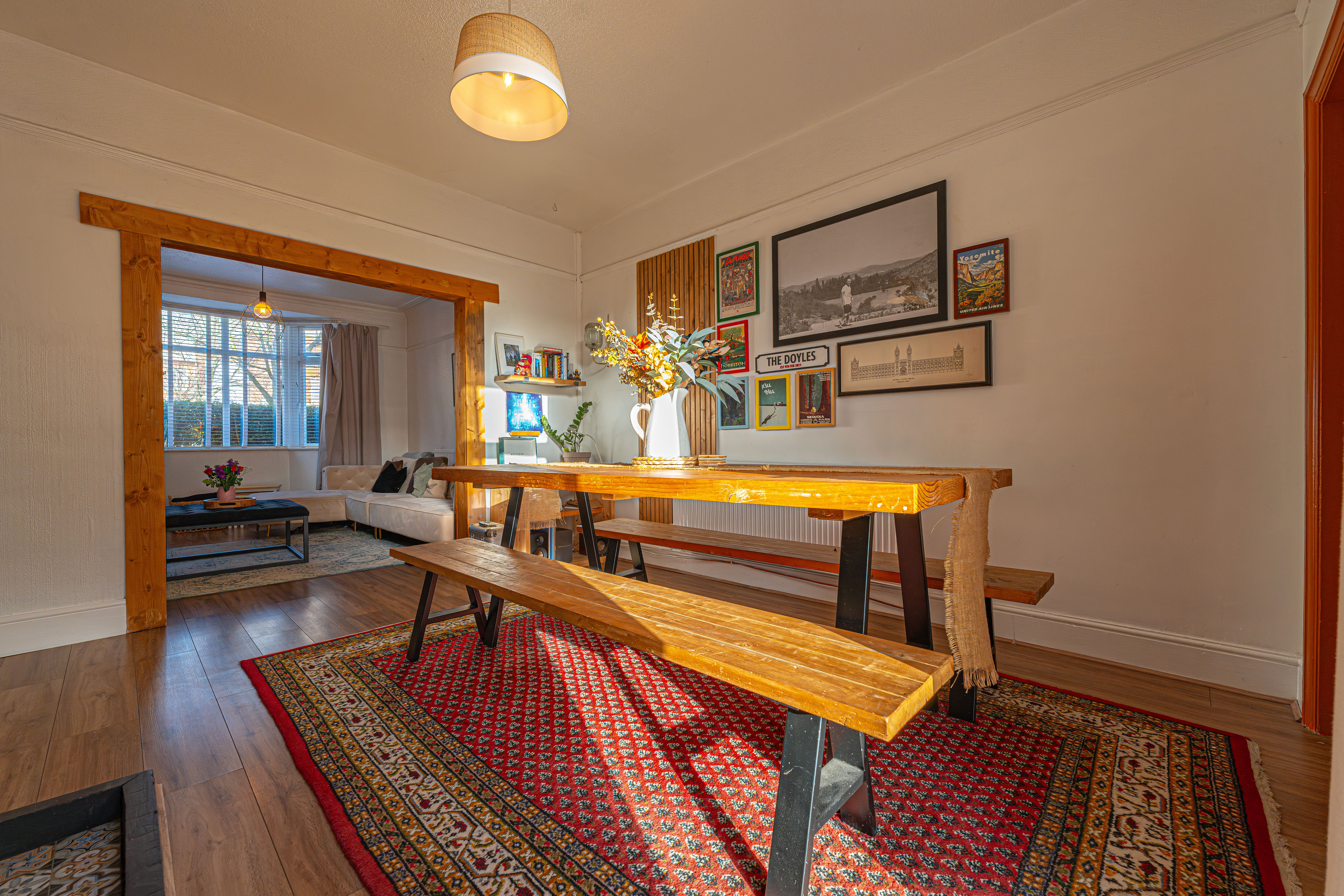 This wonderful family home effortlessly combines a charming period features and modern living, with a beautiful presentation throughout the property. At the heart of the home, we have two spacious reception rooms which are conjoined by a lovely open plan walkway, offering a great space for relaxing and entertaining. Both the living room and dining room feature original fireplaces and are flooded by natural light, while at the rear we can find a helpful storage room which would be ideal for a pantry, cloakroom or utility space. The modern kitchen is another highlight, with a range of integrated appliances and ample storage through numerous cabinets, while a helpful understairs cupboard provides further storage when being welcomed into the large entry foyer.