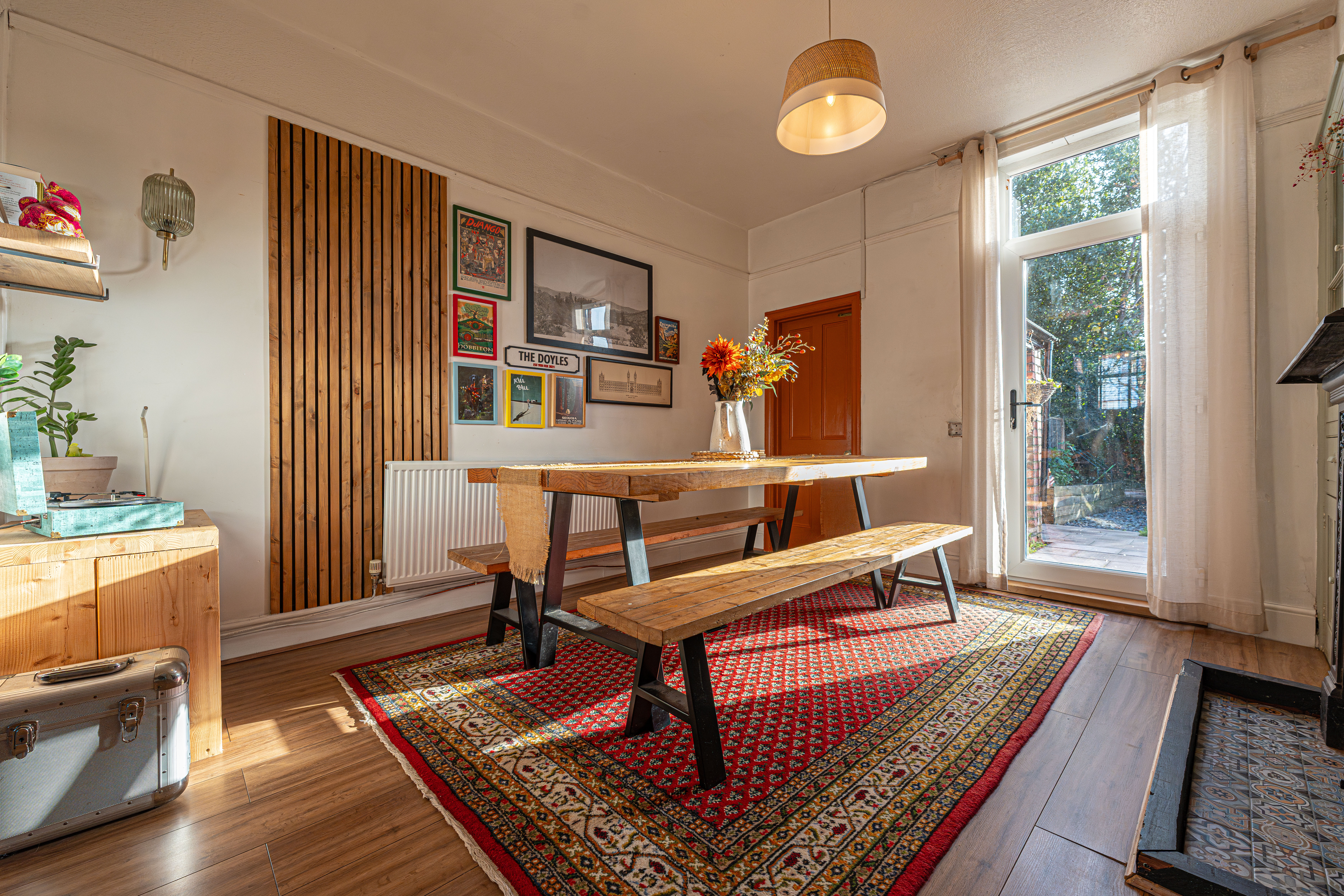 Stepping outside, we have the wonderful rear garden which is fully enclosed and offers a spacious patio and a grass lawn, with plenty of space for relaxing in the fresh air, and entertaining guests over tea/coffee or dining al-fresco style. The garden also features both an external shed and an outhouse toilet, providing additional storage and conversion potential. To the front of the house we can also find on-road residential permit parking.