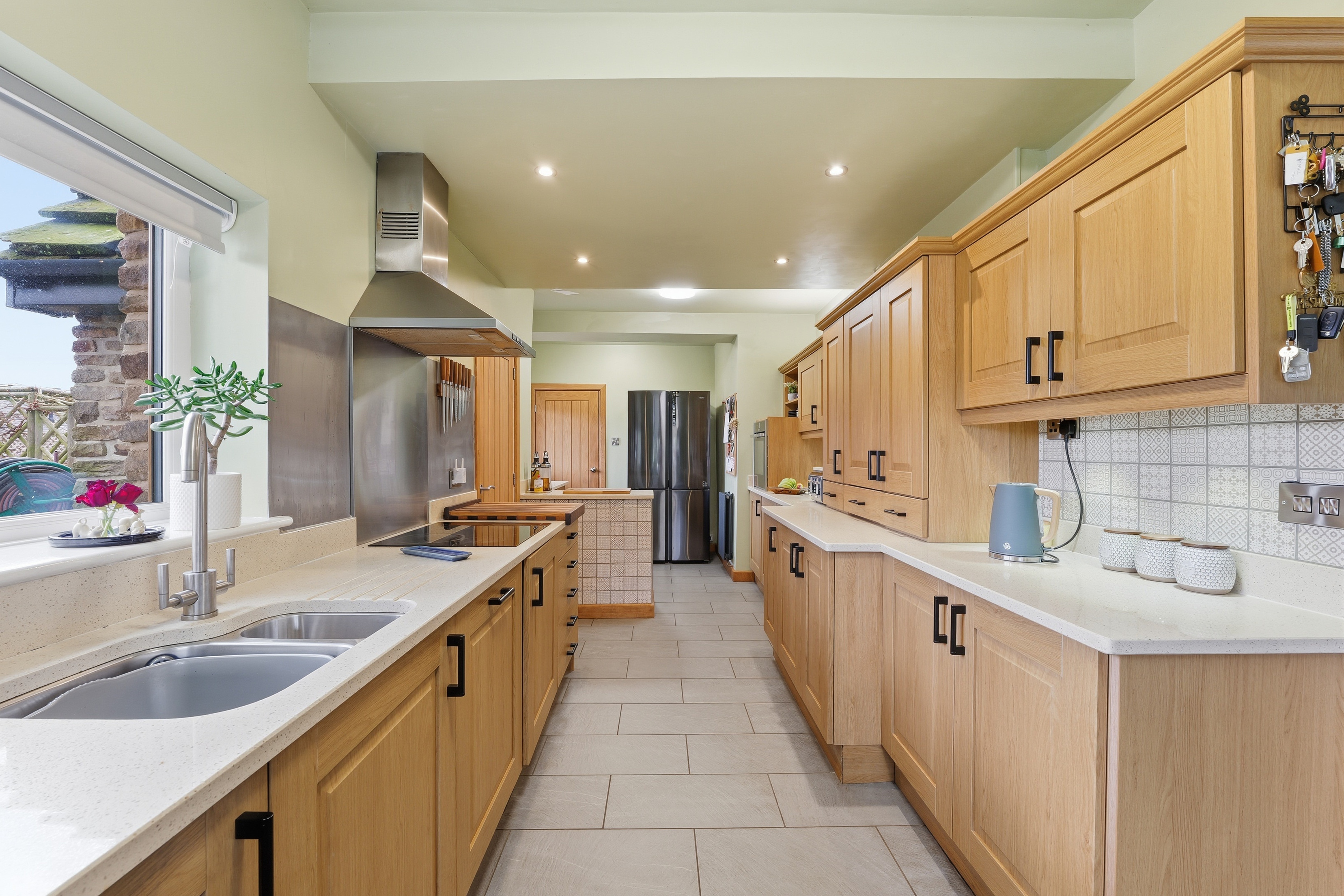 Access to the downstair WC and back door. Solid oak door with castiane steel handles, tiled floor.
