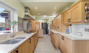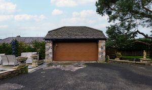 Set within a third‑of‑an‑acre plot, the property includes a 10x8ft timber shed, 10x24ft chicken run, and a half‑brick, half‑glass greenhouse with automatic‑opening windows. The garden features a tiled patio, large stone BBQ with pizza oven, and external power and lighting. A brick double garage benefits from electric supply, USB sockets, and its own consumer unit. There is also an additional powered storage shed and a secure access via a remote‑control electric gate, secondary side gate, and rear gate leading to the oil tank. Recent upgrades include new soffits and facias as well as repointing, ensuring the exterior is well maintained.
