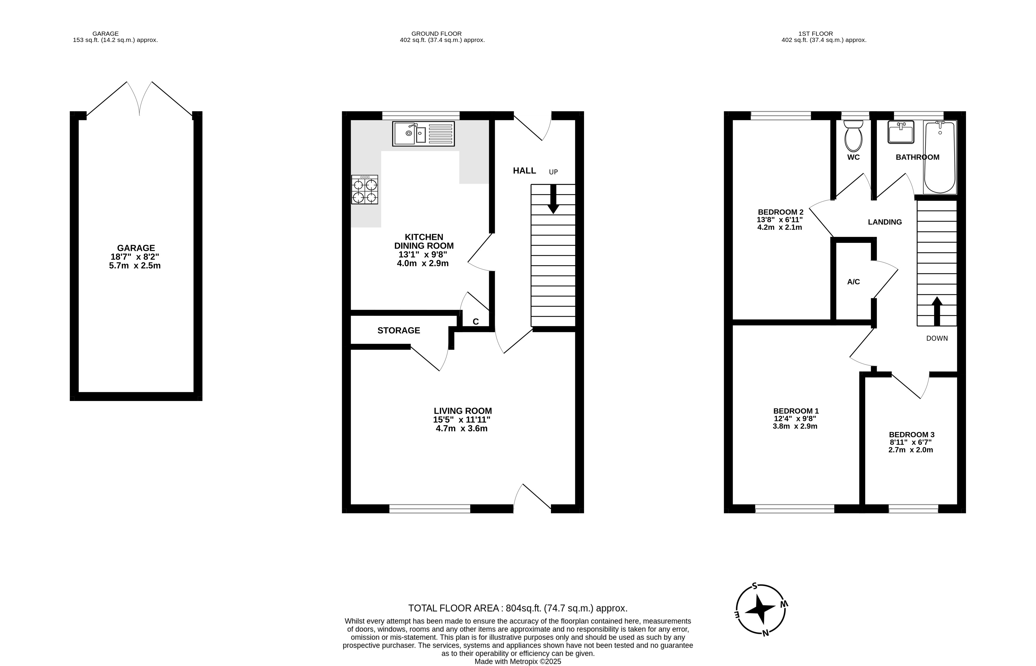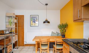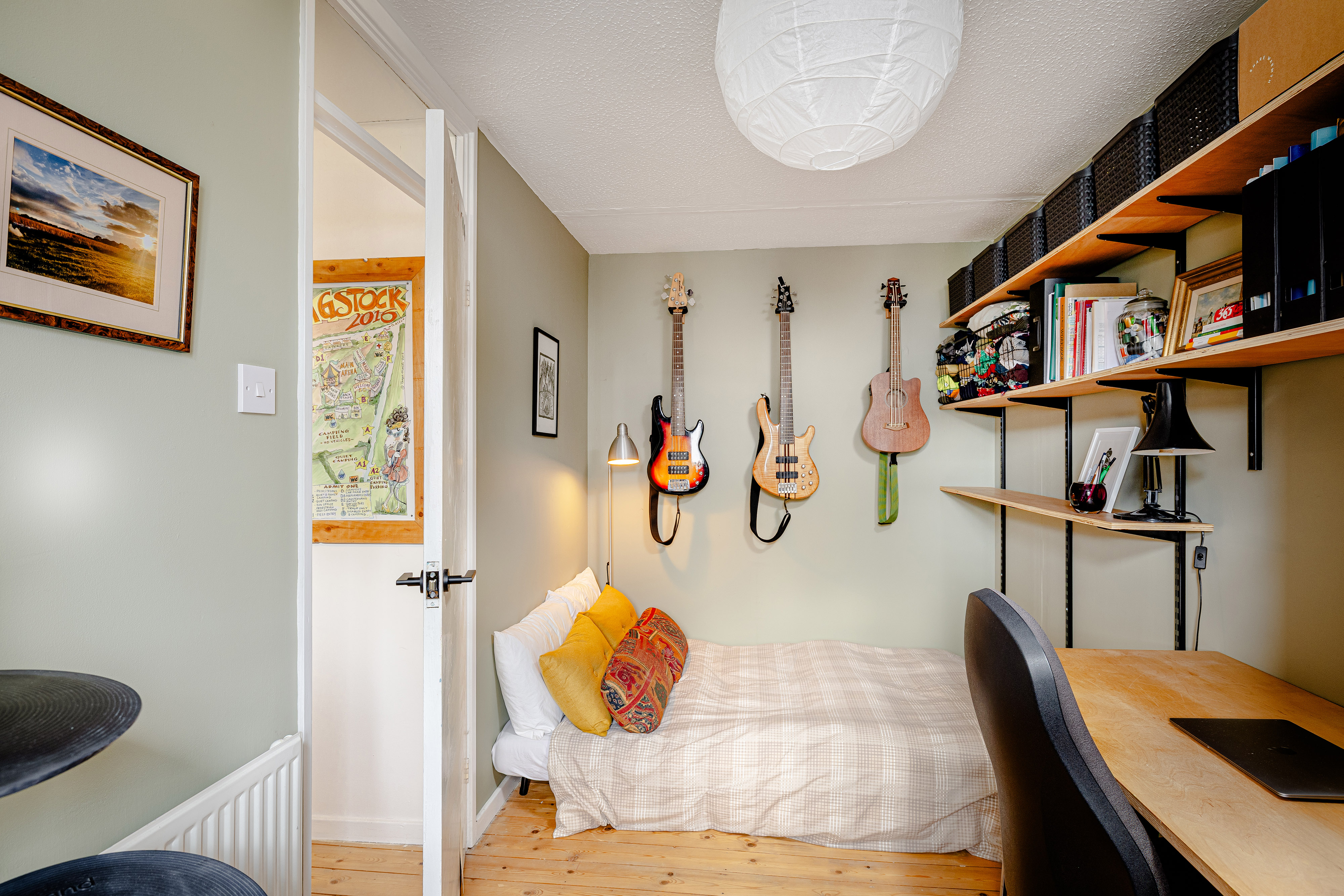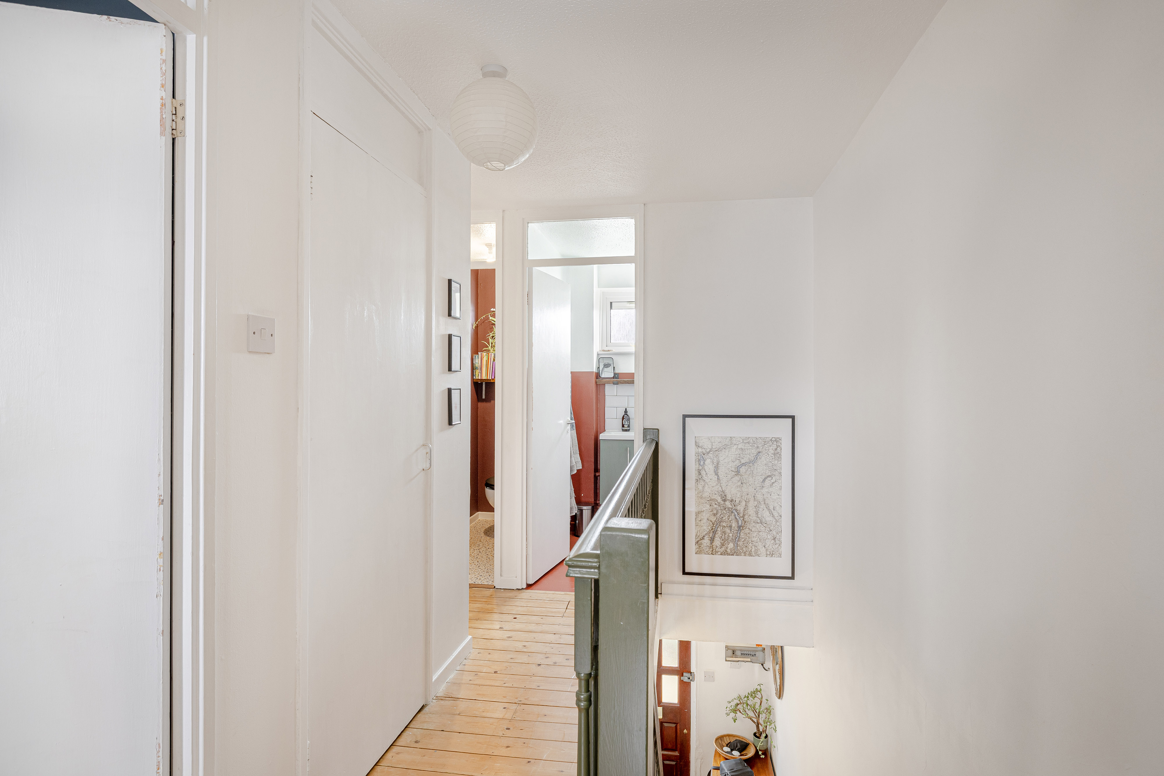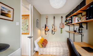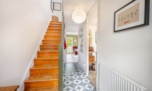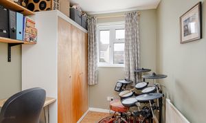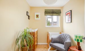 Upstairs, the home provides three well-proportioned bedrooms. The master bedroom is a comfortable double, complemented by a second double and a third bedroom that works equally well as a child’s room, nursery or study. The family bathroom has been updated with metro tiling and sits alongside a separate WC, providing convenience for busy households.
