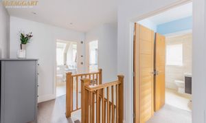 This immaculately presented three bedroom semi-detached house was constructed in 2018 by Sigma Homes to a superior specification, more recently our vendors have enlarged the property to the rear with a substantial conservatory whilst still retaining a good sized 50' long rear garden that enjoys a favoured South aspect. Ample parking is afforded to the front with a driveway that leads to the adjoining car barn. There is ceramic flooring with underfloor heating to the ground floor whilst the first floor landing and bedrooms have fitted carpets and radiator heating. All sanitary fittings are top quality Villeroy & Boch contemporary white suites.