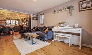 The property welcomes you with an entrance hall leading to a convenient WC/utility room and an impressive fully fitted kitchen/dining and family space. This beautifully designed open-plan area provides a bright and expansive setting, perfect for both everyday family living and entertaining.