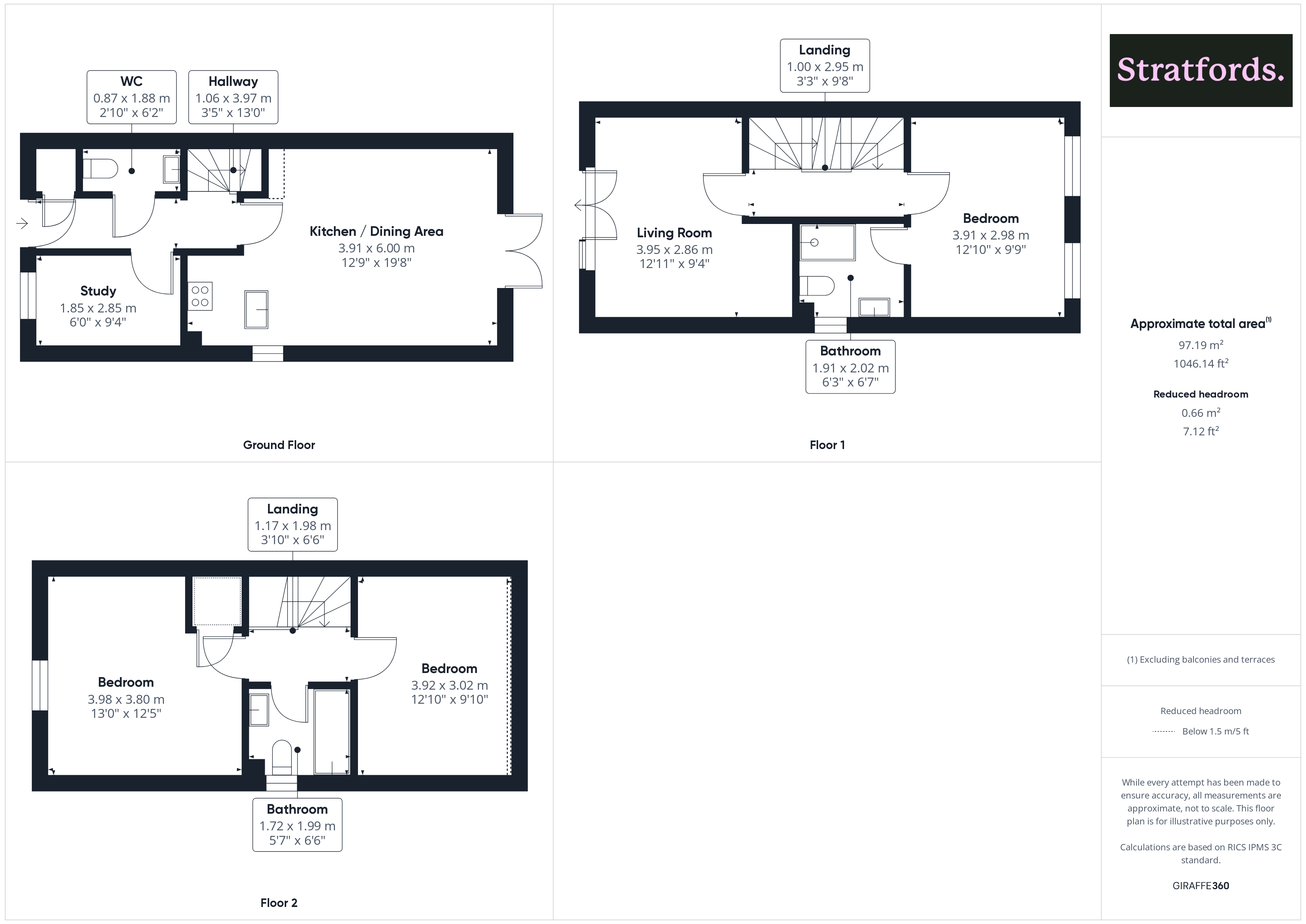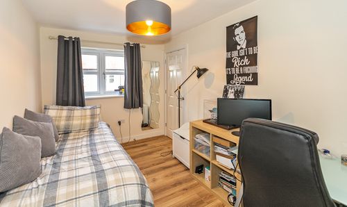 Arranged over three floors, this thoughtfully designed family home offers a superb balance of space and functionality. The ground floor features a well-equipped kitchen and dining area with access to the rear garden, a convenient WC, and a versatile study ideal for home working. The first floor hosts a bright living room with Juliet balcony, a spacious double bedroom, and a tiled ensuite with walk-in shower.