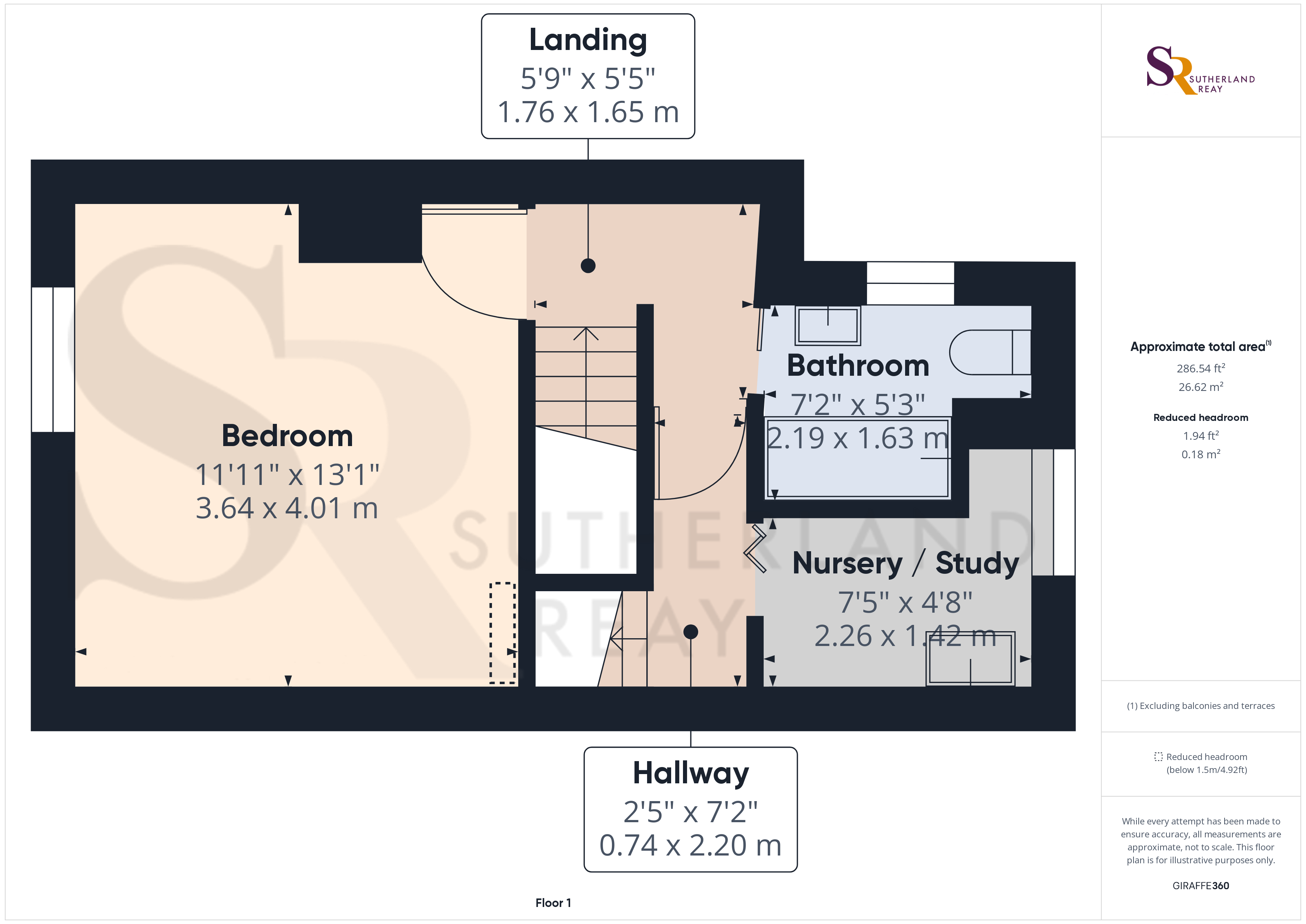 Access to bedrooms and bathroom with staircase leading to loft room.