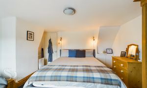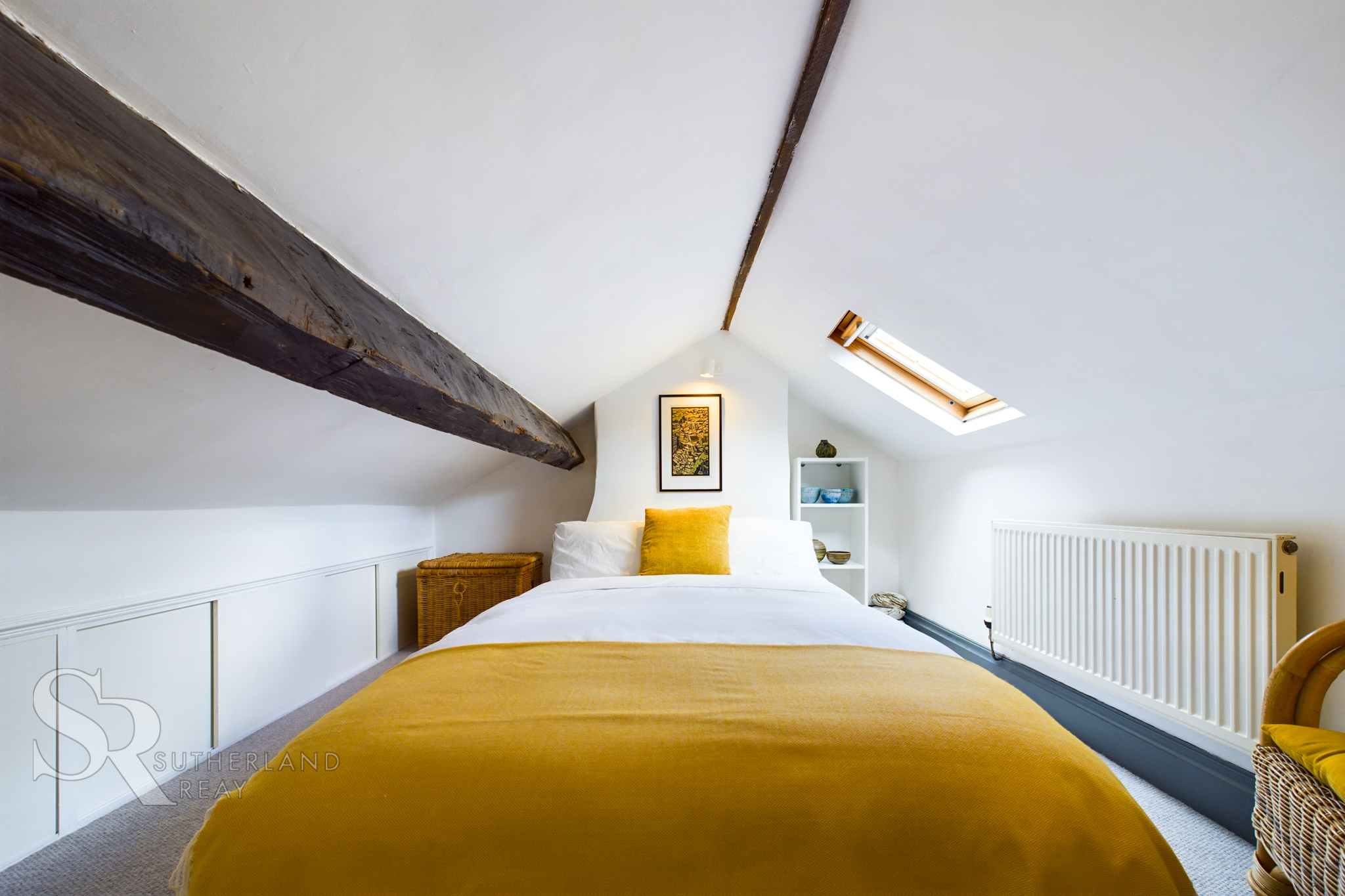 Velux window to the rear elevation and views towards Twenty Trees, exposed stained oak beams, under eaves storage, double radiator.