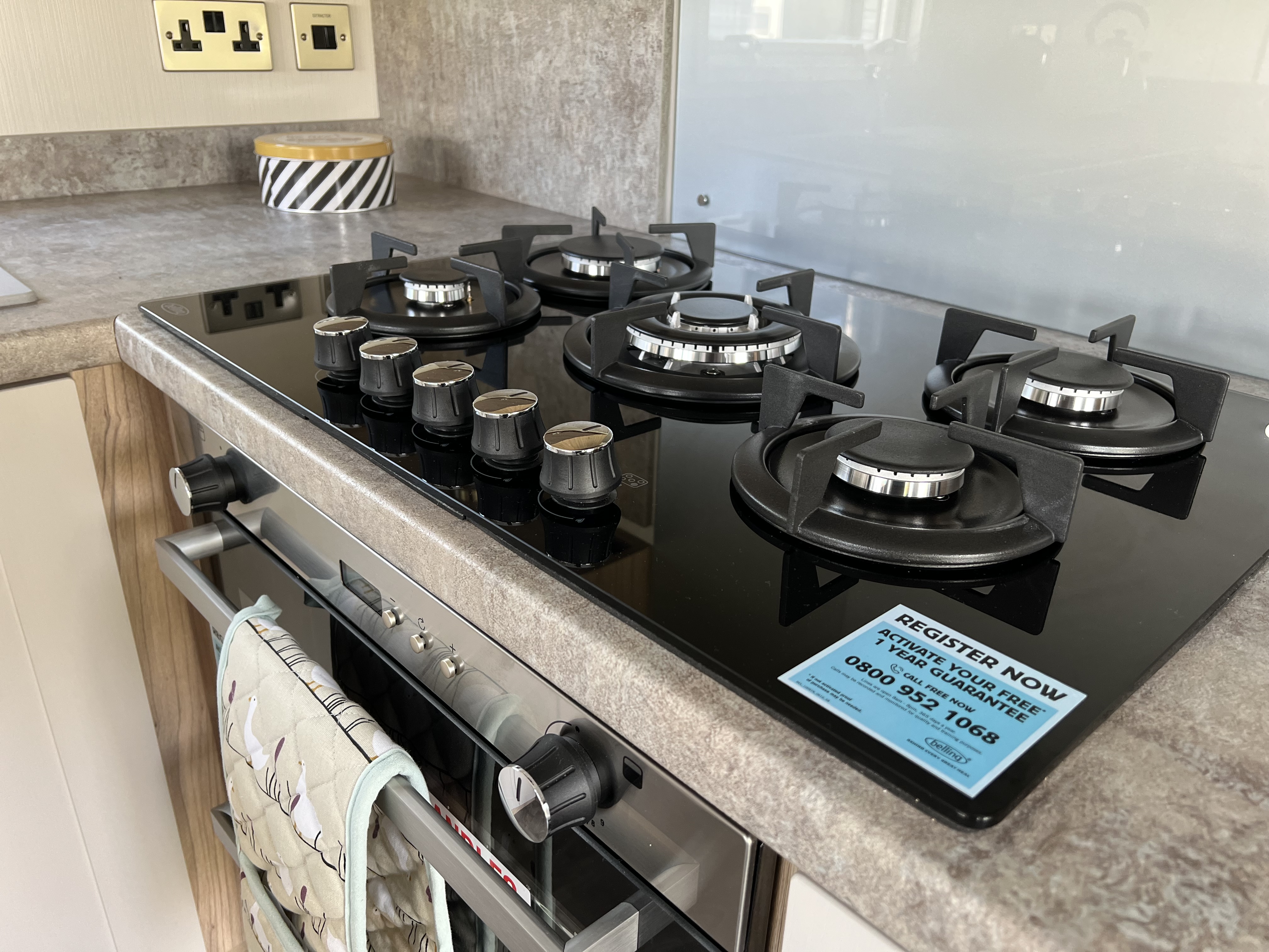 The side decking enjoys sun all day and views across to the bowling green. In addition, there are two private parking spaces. Gas bottles stored in storage unit.