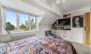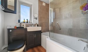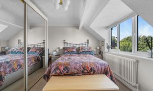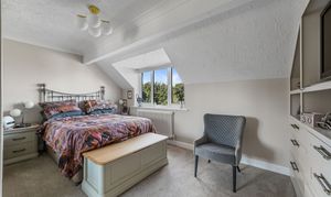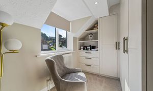 Upstairs, the home continues to impress with two spacious double bedrooms and a versatile third room that can serve as a dressing room, nursery, or home office. The main bedroom enjoys generous proportions, attractive views, and fitted storage, while the second double benefits from a bright aspect and elegant styling. The family bathroom has been tastefully modernised, featuring a three-piece suite with a shower over the bath, tiled walls, and quality fixtures and fittings, creating a fresh and calming space.