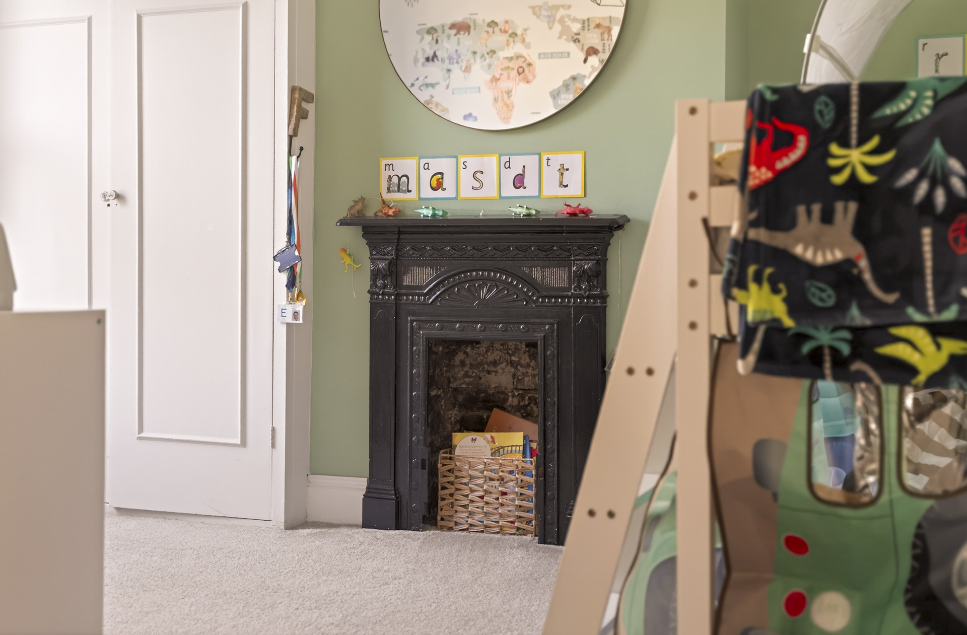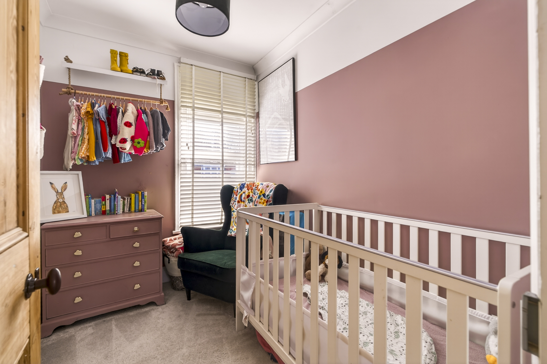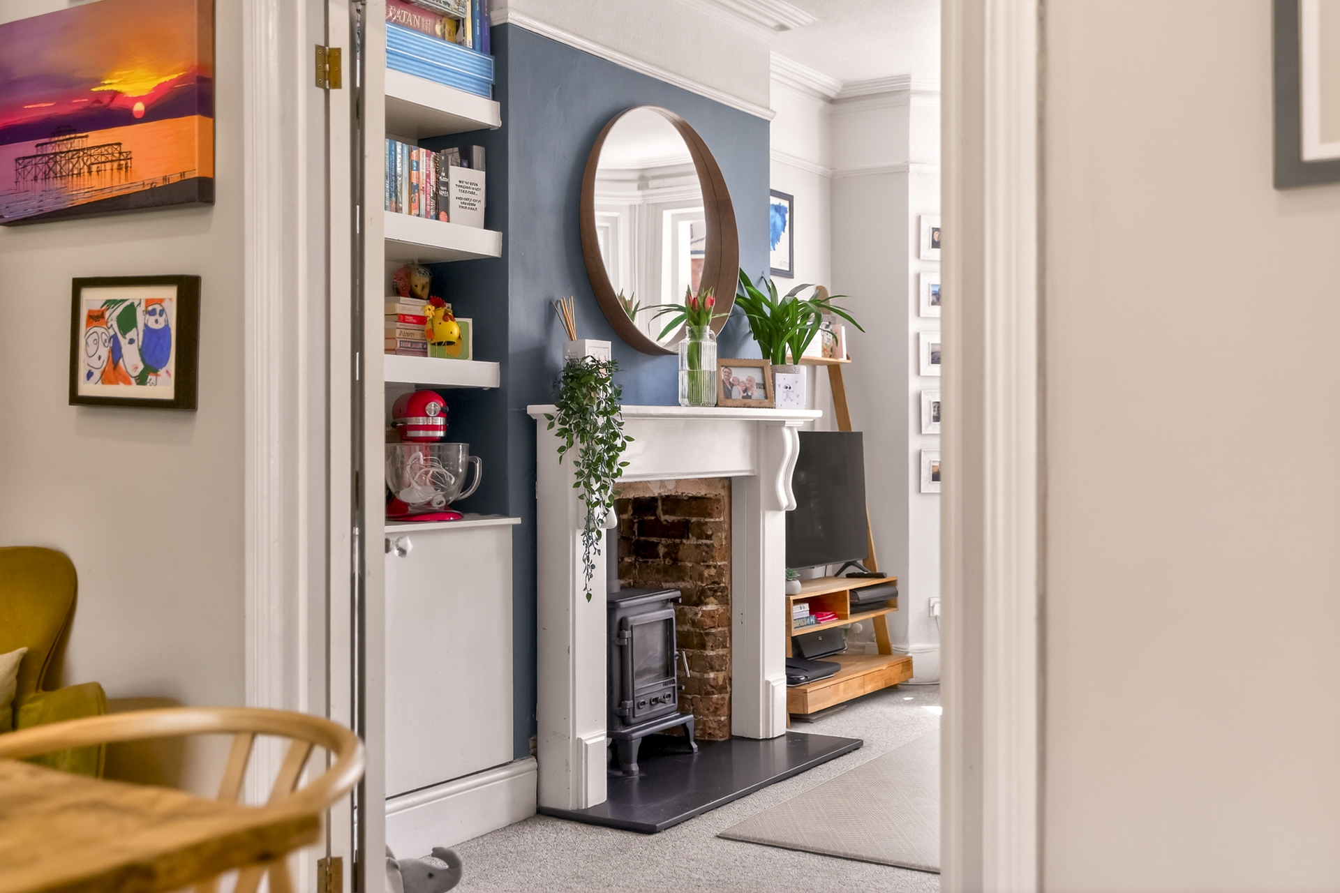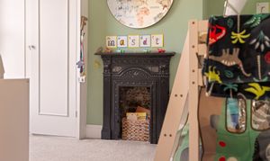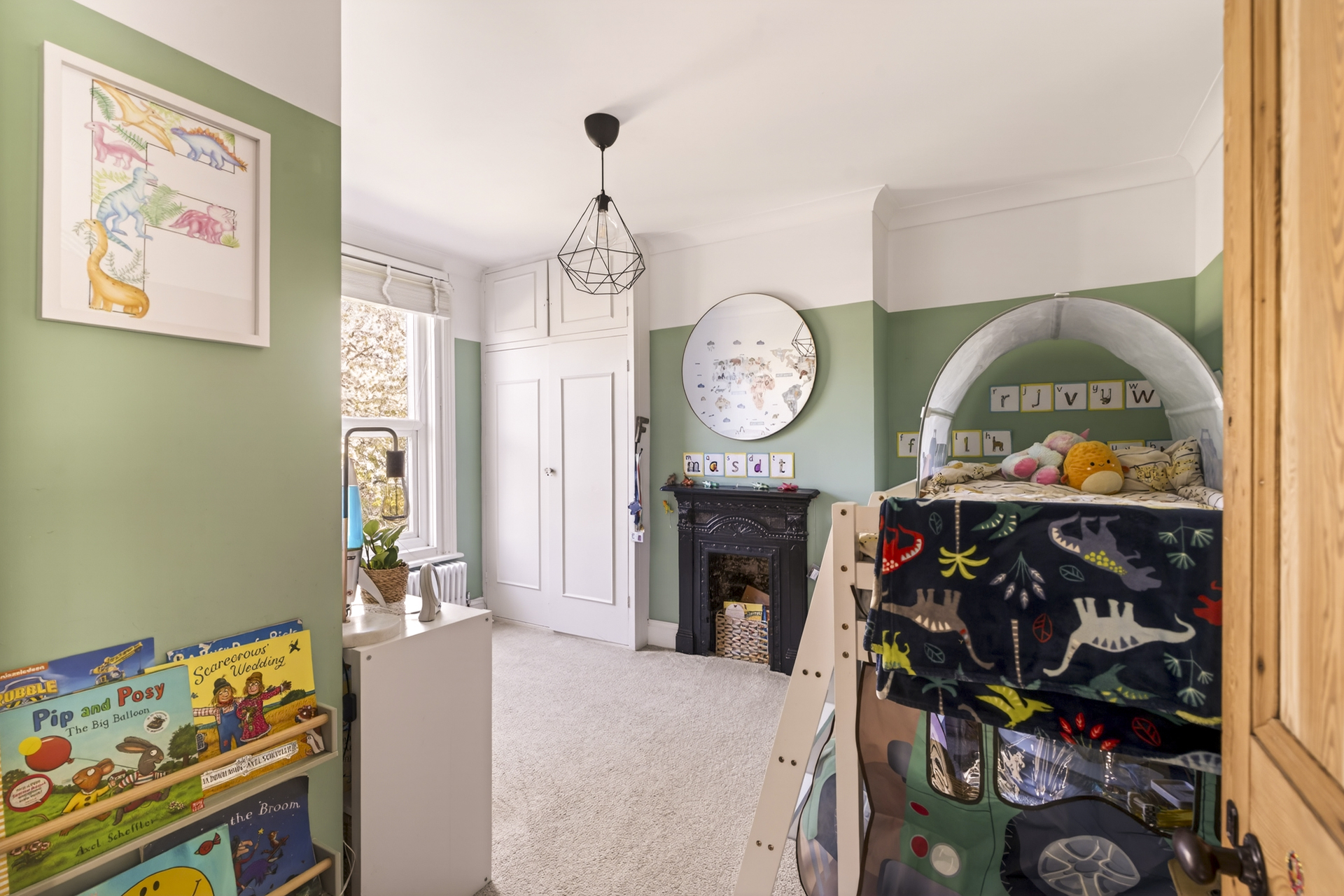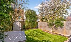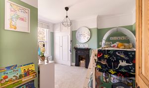 The second bedroom is another lovely large space, overlooking the leafy back garden and again benefitting from built-in storage beside the original fireplace.