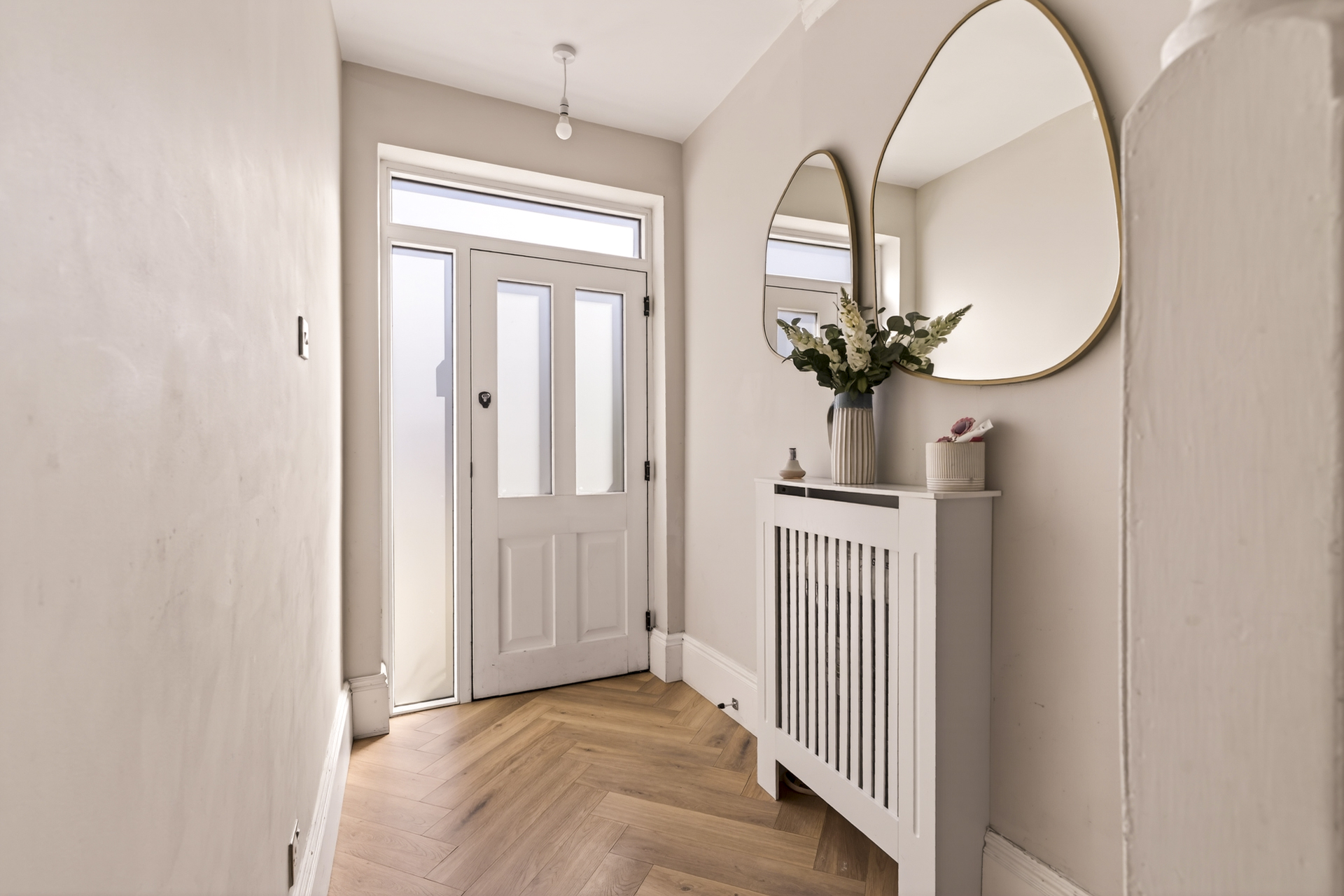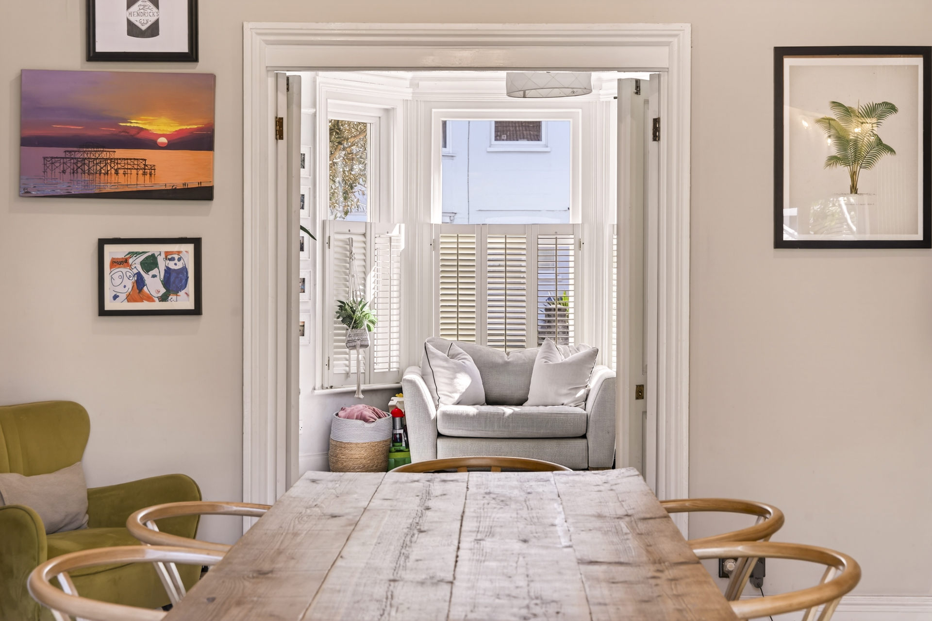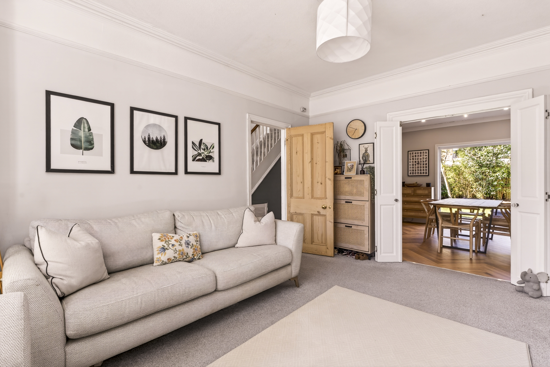 Spacious, bright front reception room with bifold doors to partition the space from the dining area, and a separate entrance from the hallway.