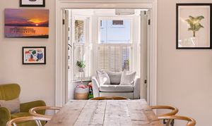 Bright dining area sectioned off from the kitchen and leading out into the back garden.