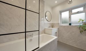 Upstairs, three well-proportioned bedrooms offer comfortable accommodation, all benefitting from natural light and flexible layouts to suit a variety of lifestyles. The family bathroom is thoughtfully arranged, providing a practical and stylish environment for daily routines.