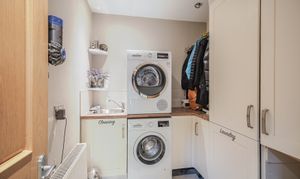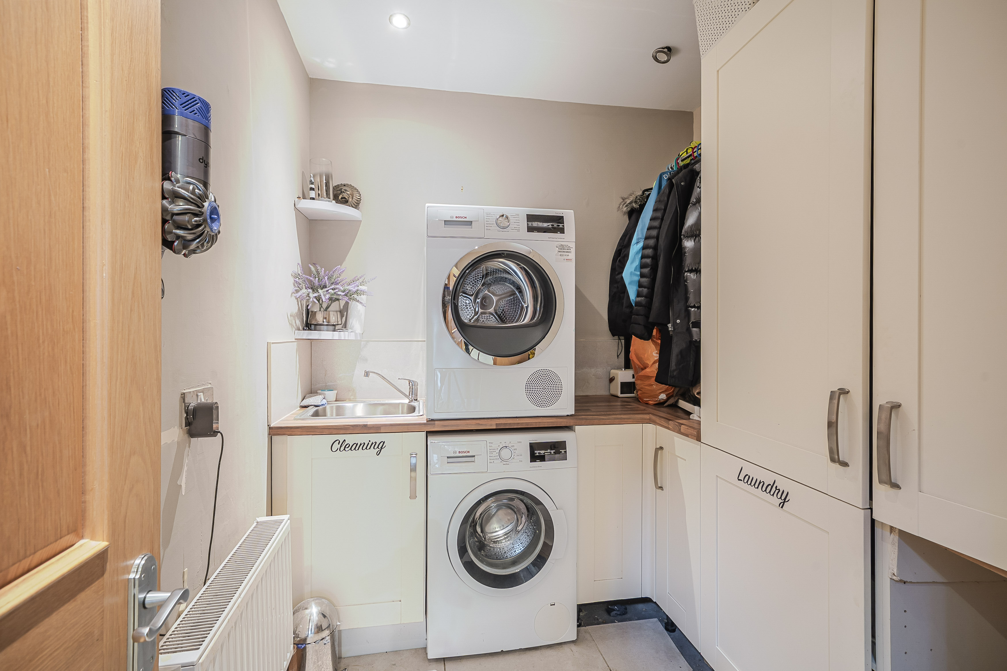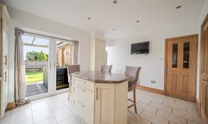 This is accessed from the main entrance hall and has inset LED downlighters, tiled floor, central heating radiator together with a range of ivory shaker style cupboards with contrasting overlying timber effect worktops together with splashbacks, inset stainless steel sink with chrome monobloc tap and with plumbing for automatic washing machine.