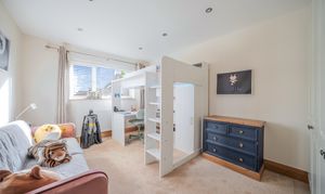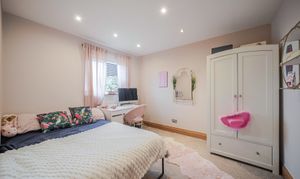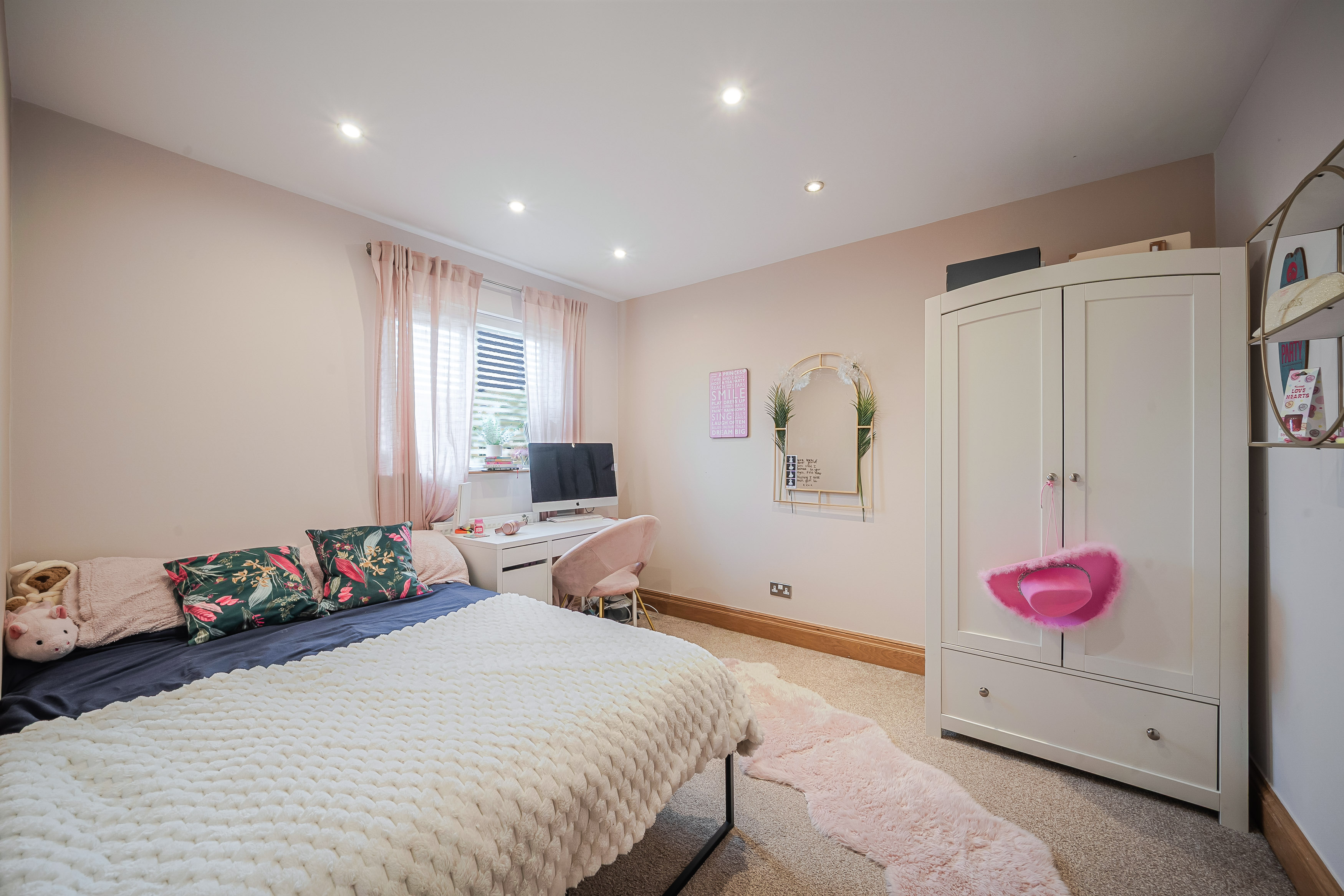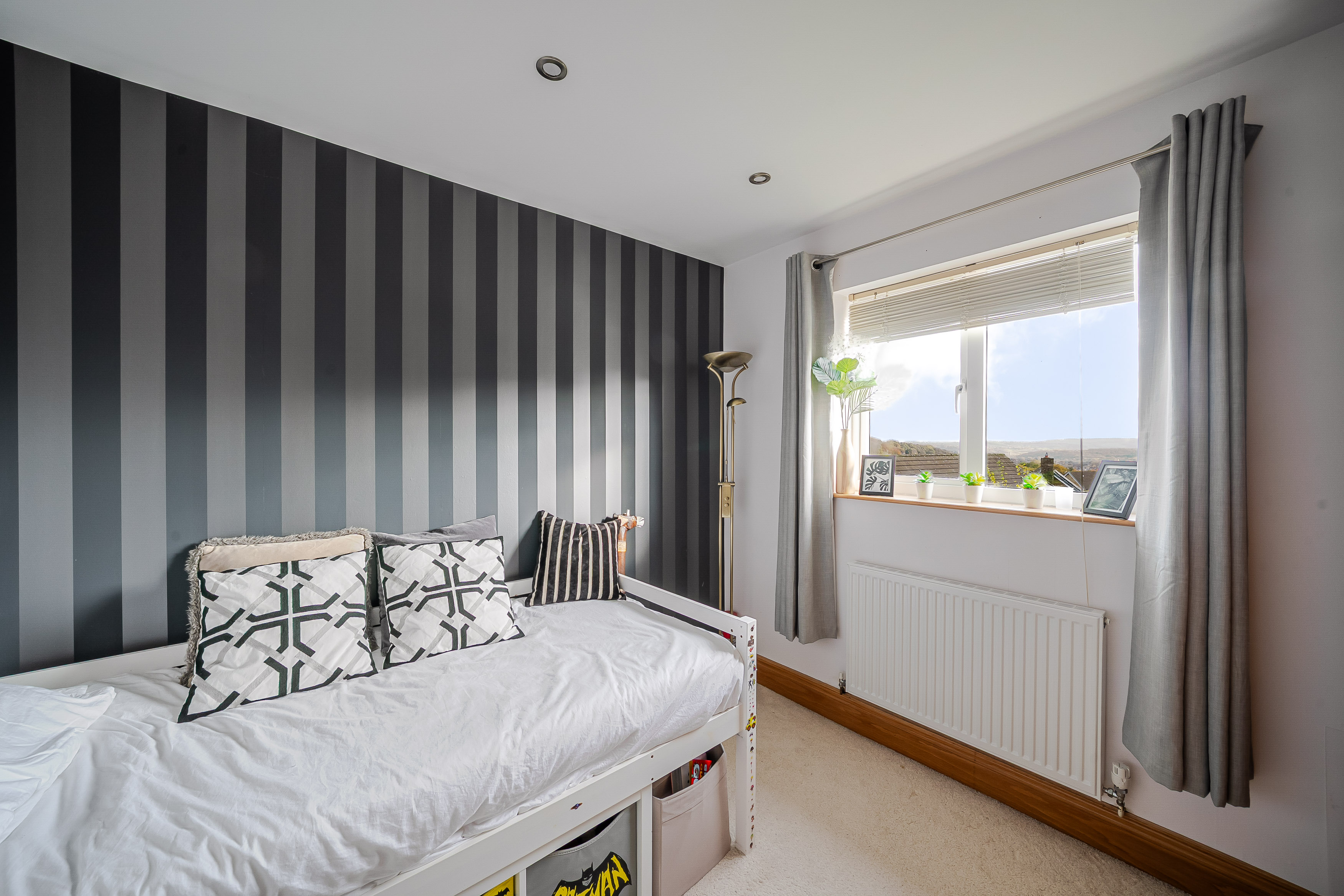 A double room with pvcu double glazed window looking out over the rear garden and once again enjoying some far-reaching views, there are inset LED downlighters and a central heating radiator.
