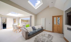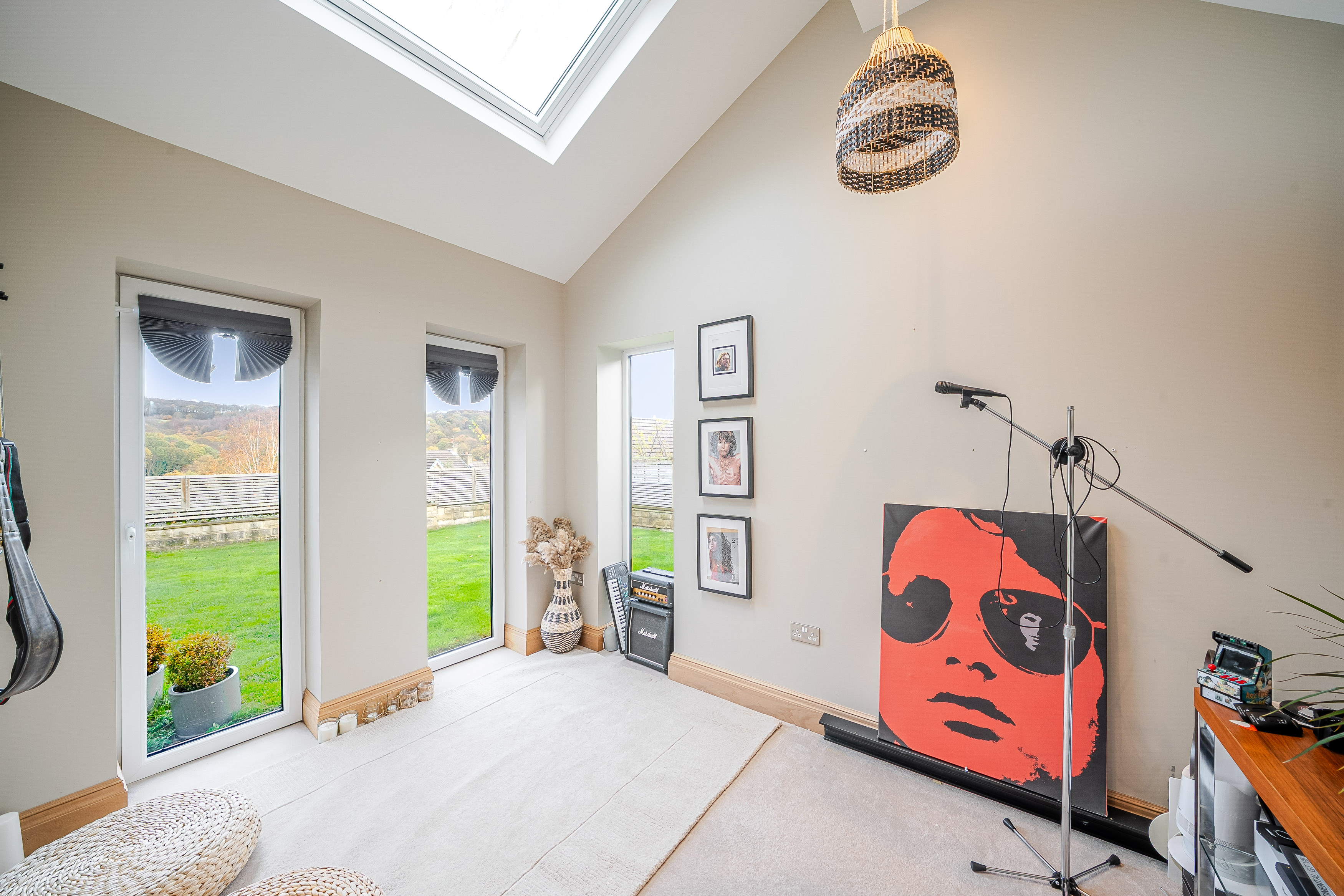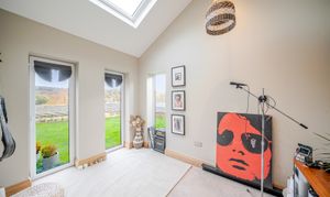 This is accessed from the sitting area and has an oak panelled and bevelled glass door, there is a pvcu double glazed window to the rear elevation and two pvcu double glazed doors to the side elevation with views stretching across to Grimscar woods. In addition there is further natural light from Velux double glazed window together with inset LED downlighters and a vertically hung radiator.
