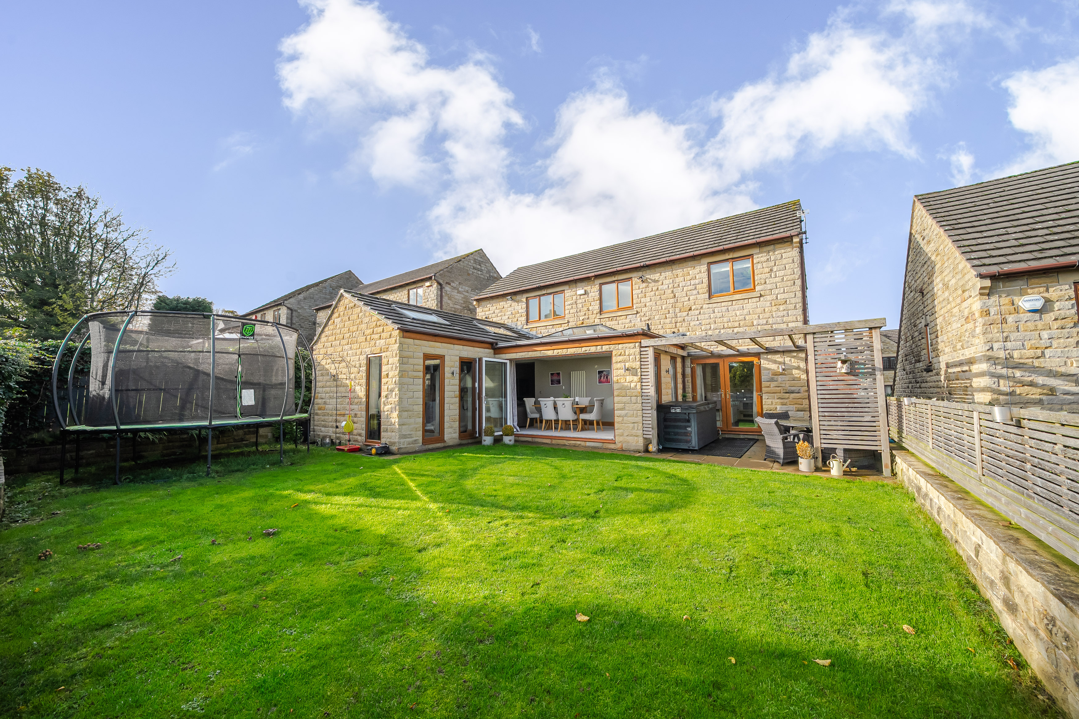 The property has been extended at ground floor level to offer excellent living space ideal for those who wish to entertain and situated within a popular and well-regarded residential area close to neighbouring Lindley with a variety of shops, restaurants and bars, Huddersfield Royal Infirmary and minutes from junction 24 of the M62 linking East Lancashire to West Yorkshire. The accommodation is served by gas central heating system, pvcu double glazing, security and alarm. Briefly comprising to the ground floor entrance hall, downstairs wc, bay fronted living room, fitted breakfast kitchen, large open plan sitting and dining area with glazed atrium and three section bi fold doors with study off. First floor landing leading to master bedroom with en-suite bathroom, three further double bedrooms and family bathroom. Externally a double width tarmac driveway provides off-road parking and in turn leads to a double garage together with gardens laid out to both front and rear.