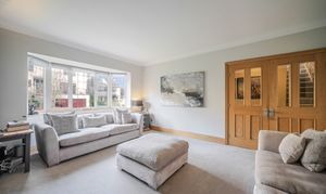 This is approached through twin oak panelled and bevelled glass doors, there is a walk-in bay with pvcu double glazed windows looking out over the front garden providing the room with plenty of natural light. There is ceiling coving, two central heating radiators, two wall light points and as the main focal point of the room there is a feature fireplace with surround, tiled inset, coal effect gas fire and marble hearth.