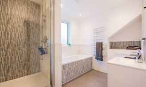 The layout of the property provides 2 double bedrooms and a family bathroom downstairs, and 3 double bedrooms upstairs with another family bathroom including separate shower, ideal for larger families or when you have guests stay.