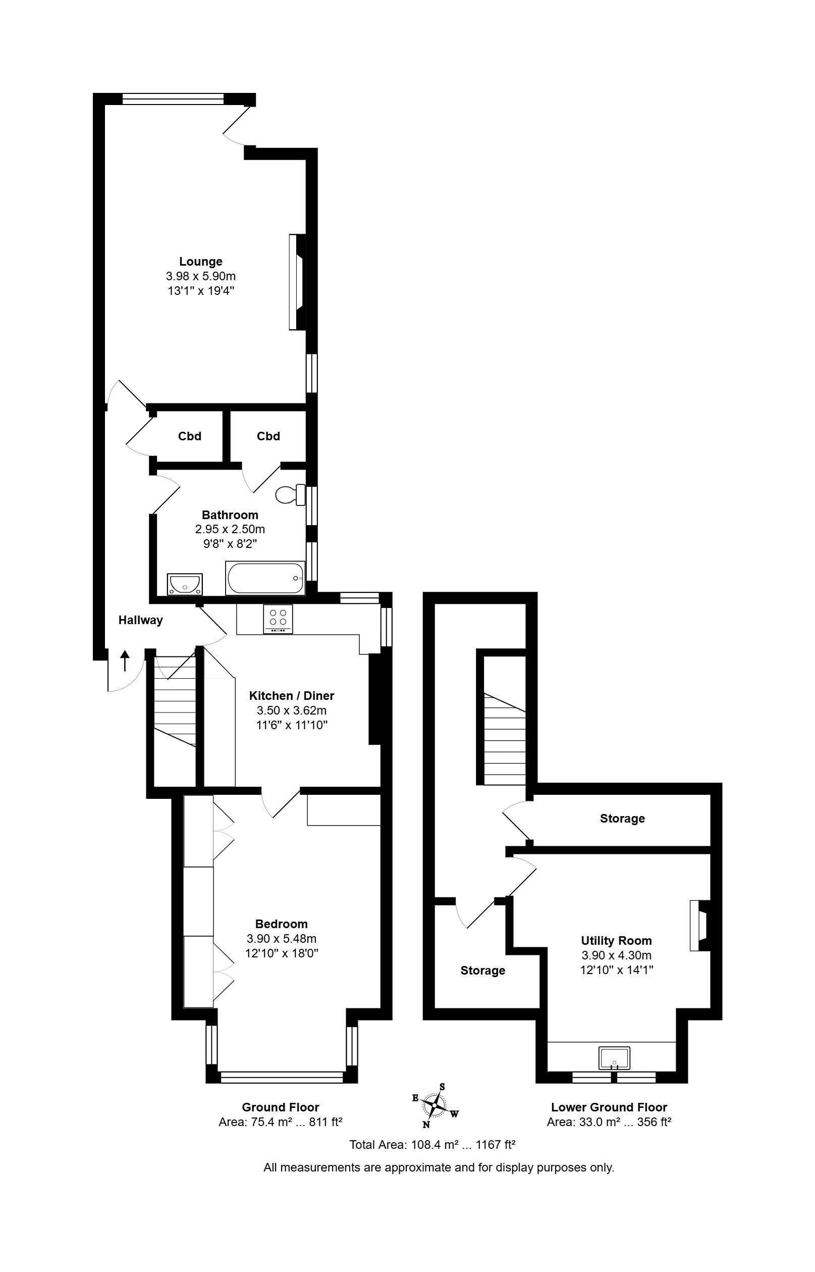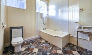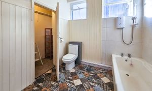 The double bedroom is equally impressive, featuring a bay-style layout that enhances the sense of space. The bathroom is well proportioned and includes a full-sized bath with shower above. In addition to the main accommodation, the property benefits from exceptional bonus space in the form of a lower-ground utility room and additional storage rooms—an uncommon advantage in a one-bedroom home.