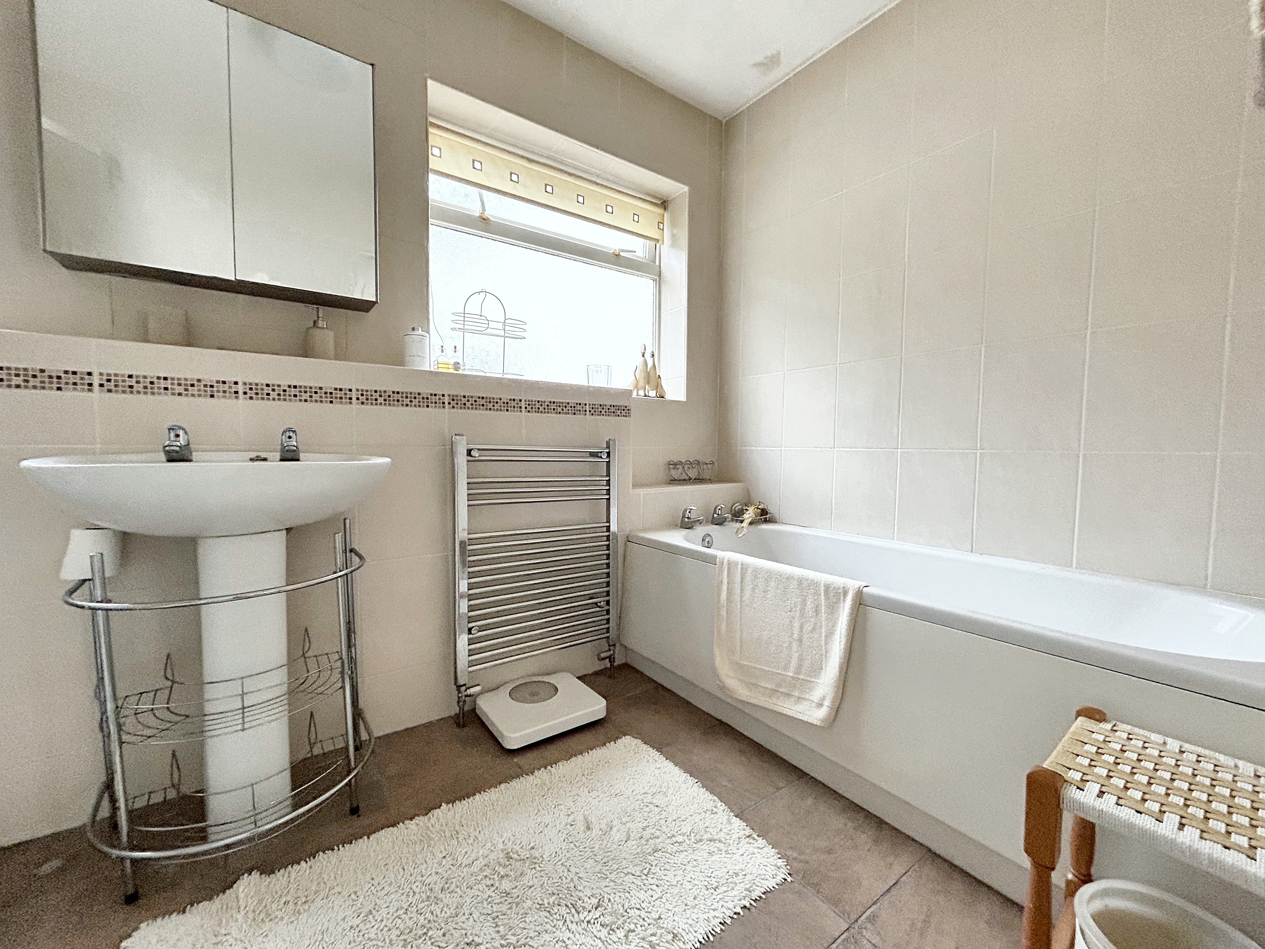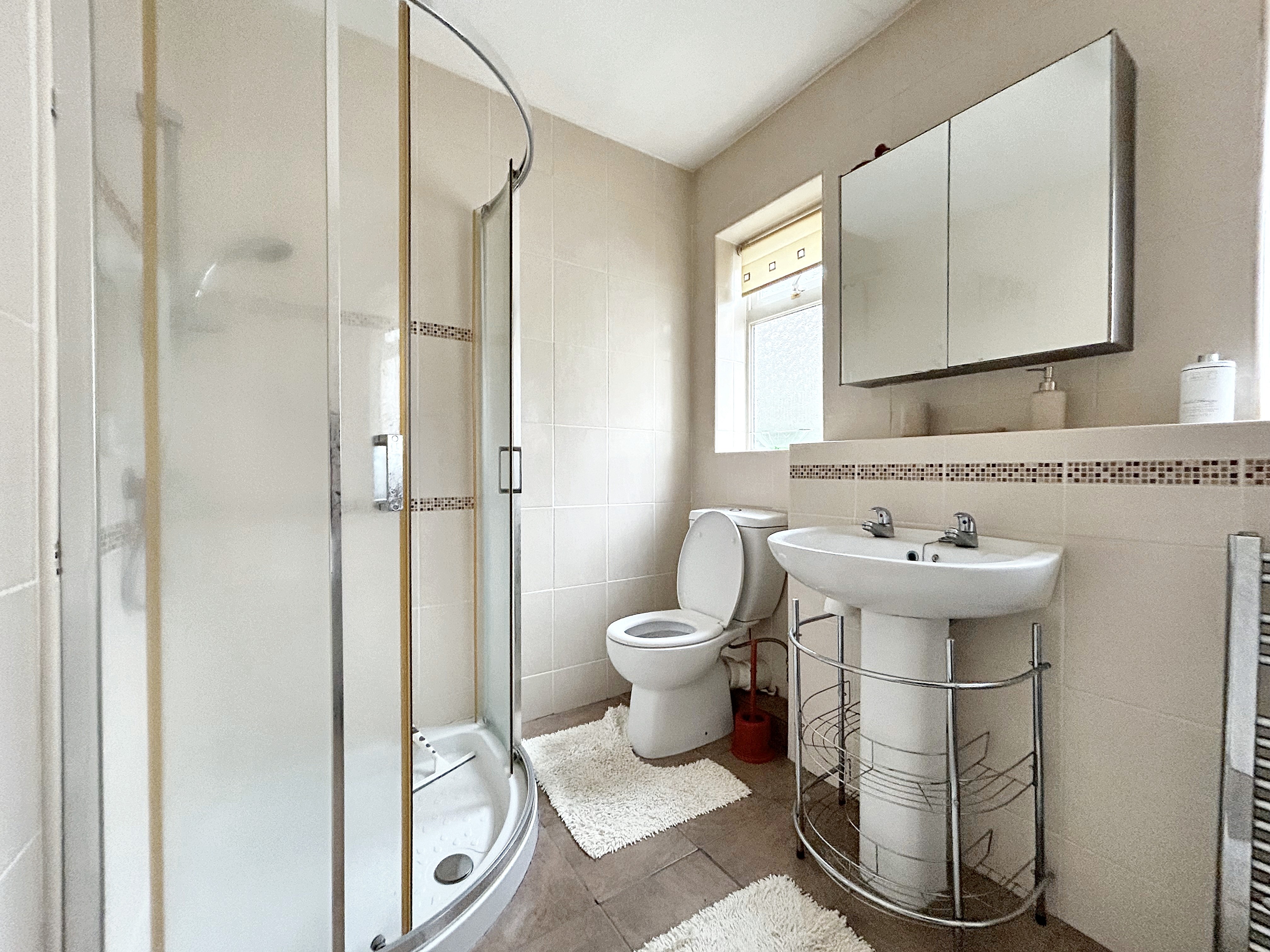 Dual windows to side elevation. Bathroom suite comprising of shower, bath, low level W.C and hand wash basin.