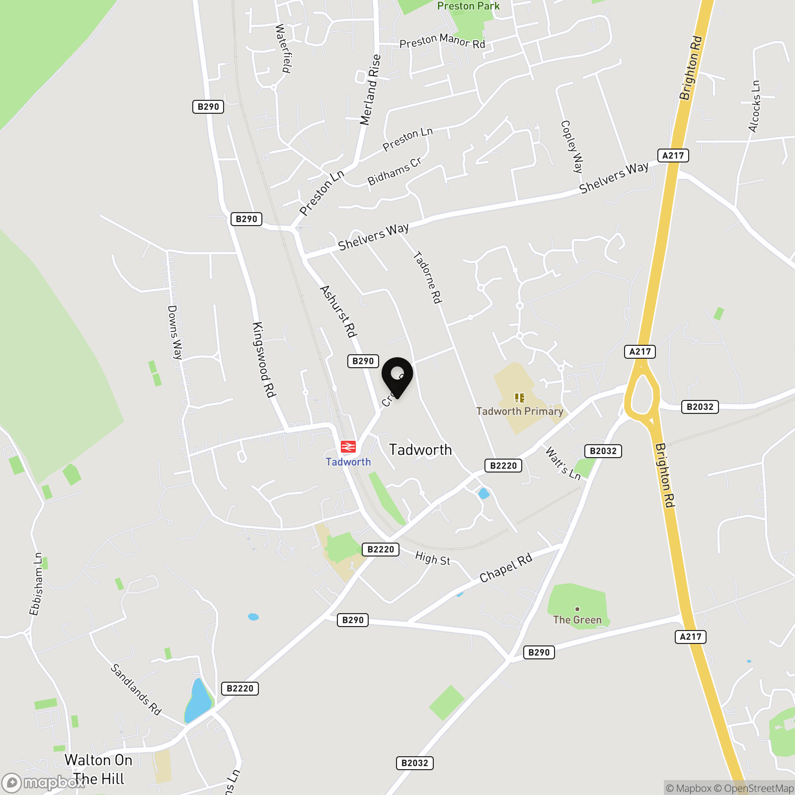 Rail: Nearby stations include Tadworth (approx. 0.1 miles) and Tattenham Corner (approx. 0.8 miles), offering regular rail services towards London Bridge and connections across the wider rail network.