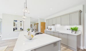 Bedroom three is located at the rear of the property and is finished in warm grey decor, creating a calm and inviting atmosphere. A well proportioned bedroom, it also benefits from its own stylish en suite bathroom, providing additional comfort and convenience.