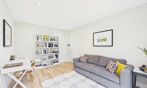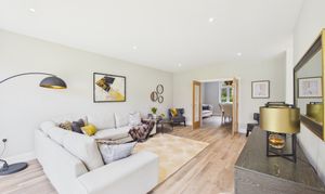 Forming part of the extended kitchen and living space, this bright and contemporary lounge area is partially separated by a wall that naturally lends itself to a media or TV feature wall. With bi-fold doors opening onto the garden, the room enjoys excellent natural light and a strong connection to the outdoor space. Finished in neutral decor and benefiting from underfloor heating, it provides a comfortable and stylish space for relaxing or entertaining.