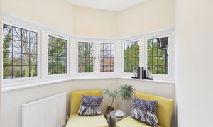 The turret area forms a charming and distinctive feature of the first floor and creates a lovely additional space off the landing. With room for a pair of chairs, it lends itself perfectly to use as a quiet reading nook or relaxation spot. Surrounded by six windows, the area enjoys an abundance of natural light and pleasant views, making it a particularly inviting corner of the home.