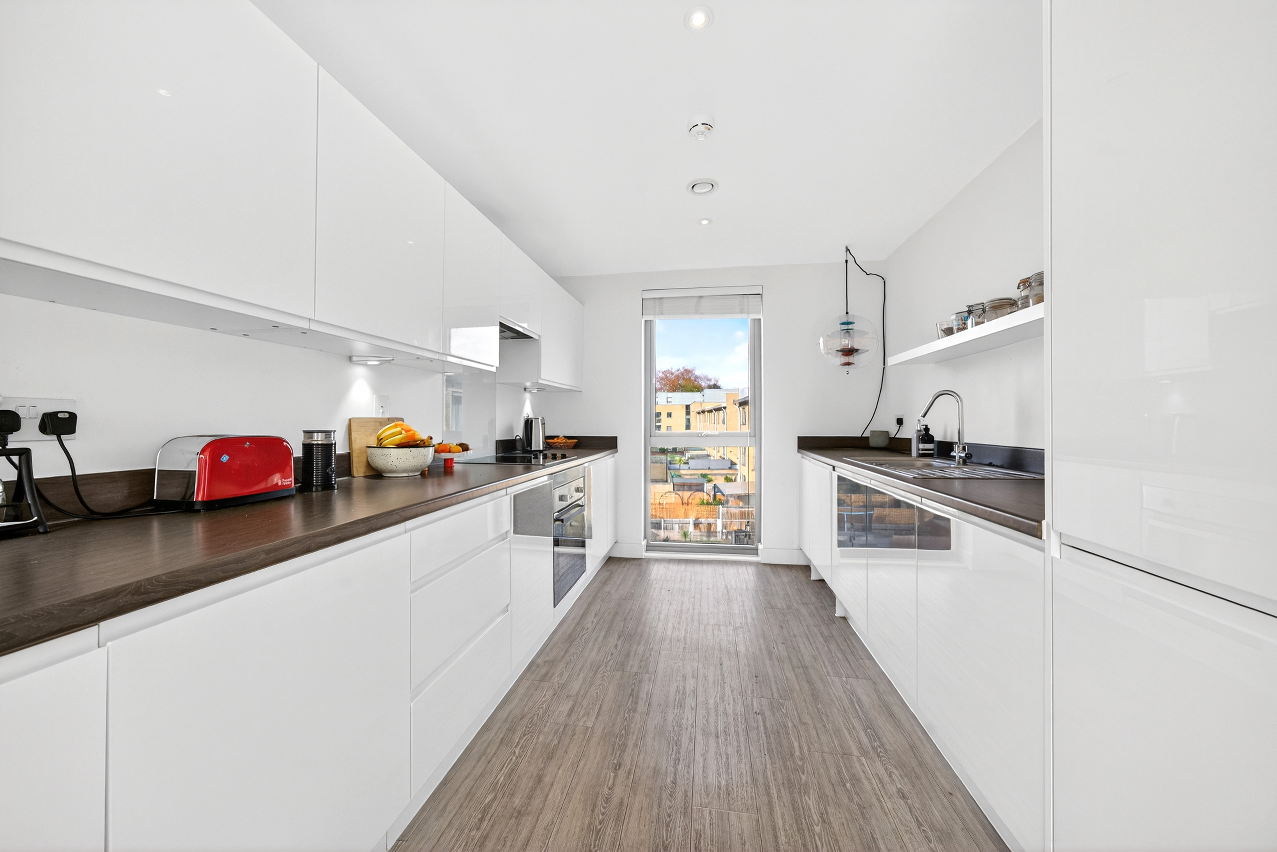 Both bedrooms are well proportioned and offer flexible space for storage or a home workspace. The sleek, modern bathroom features high end finishes and clever built in storage. Further benefits include a secure video entry system, bike storage and well maintained communal areas.