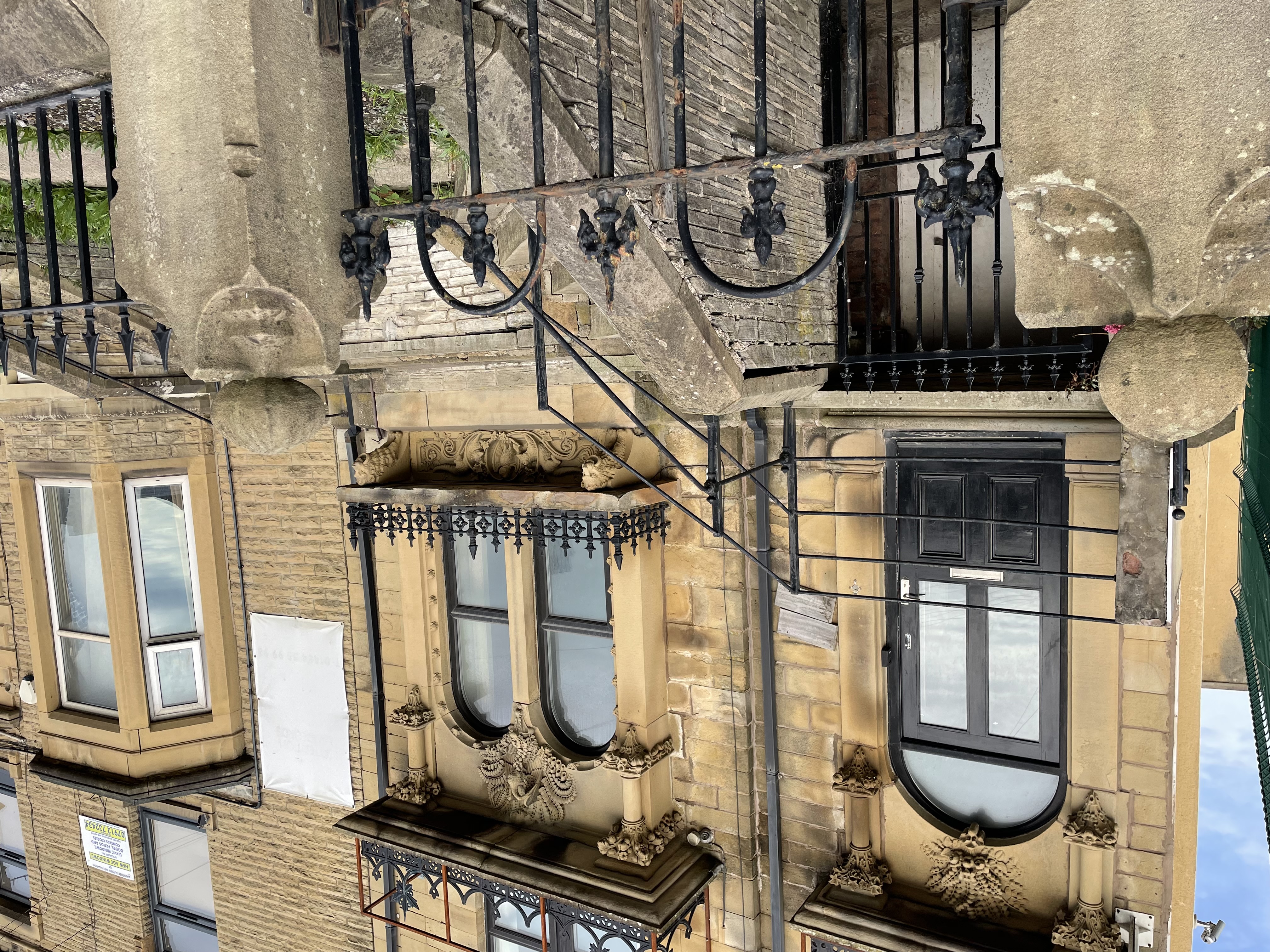 Hebble House is an elaborately designed Ashlar stone fronted end terrace house in a block of three, constructed Circa 1877 and Grade II listed along with gate piers, hand gate and front wall.