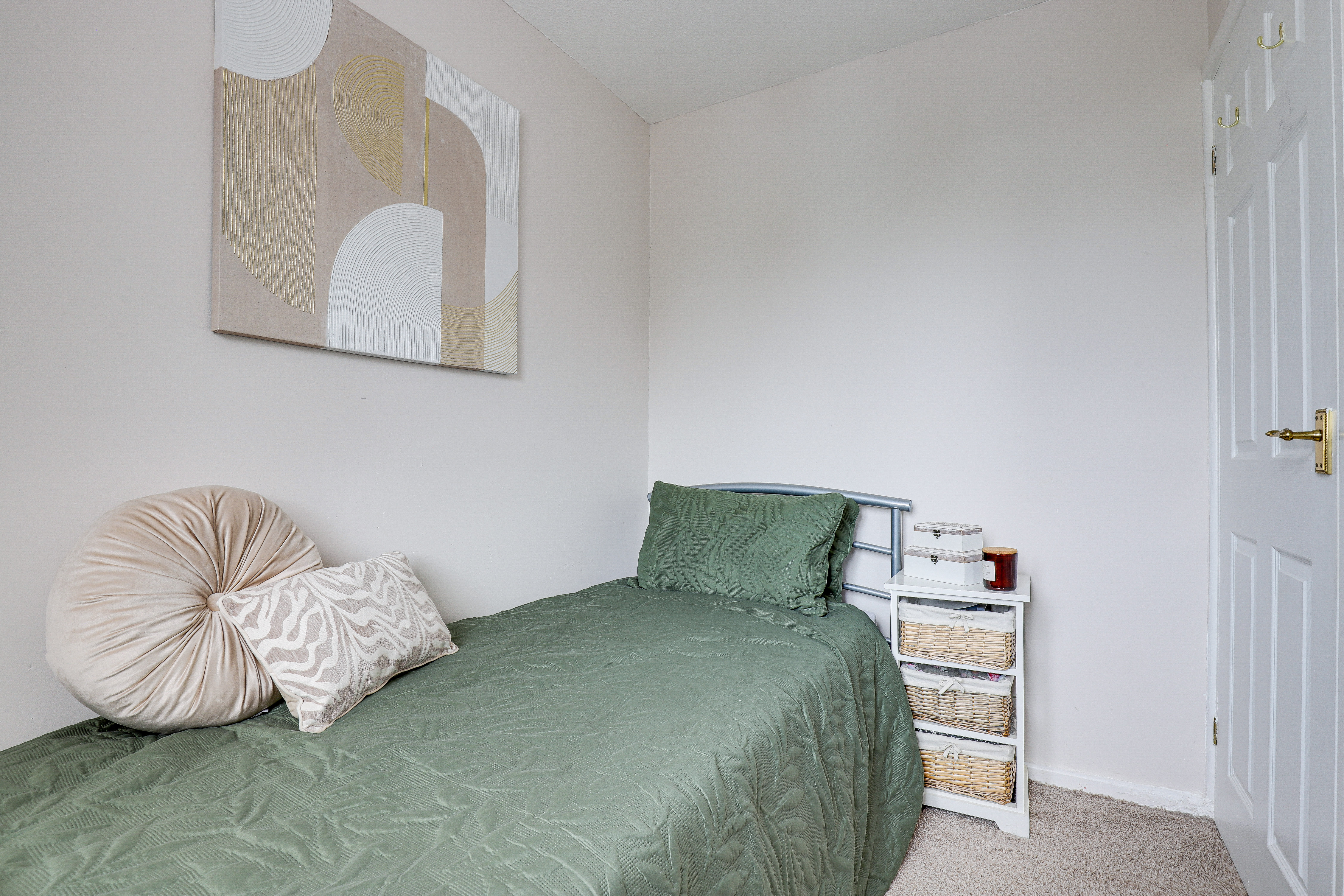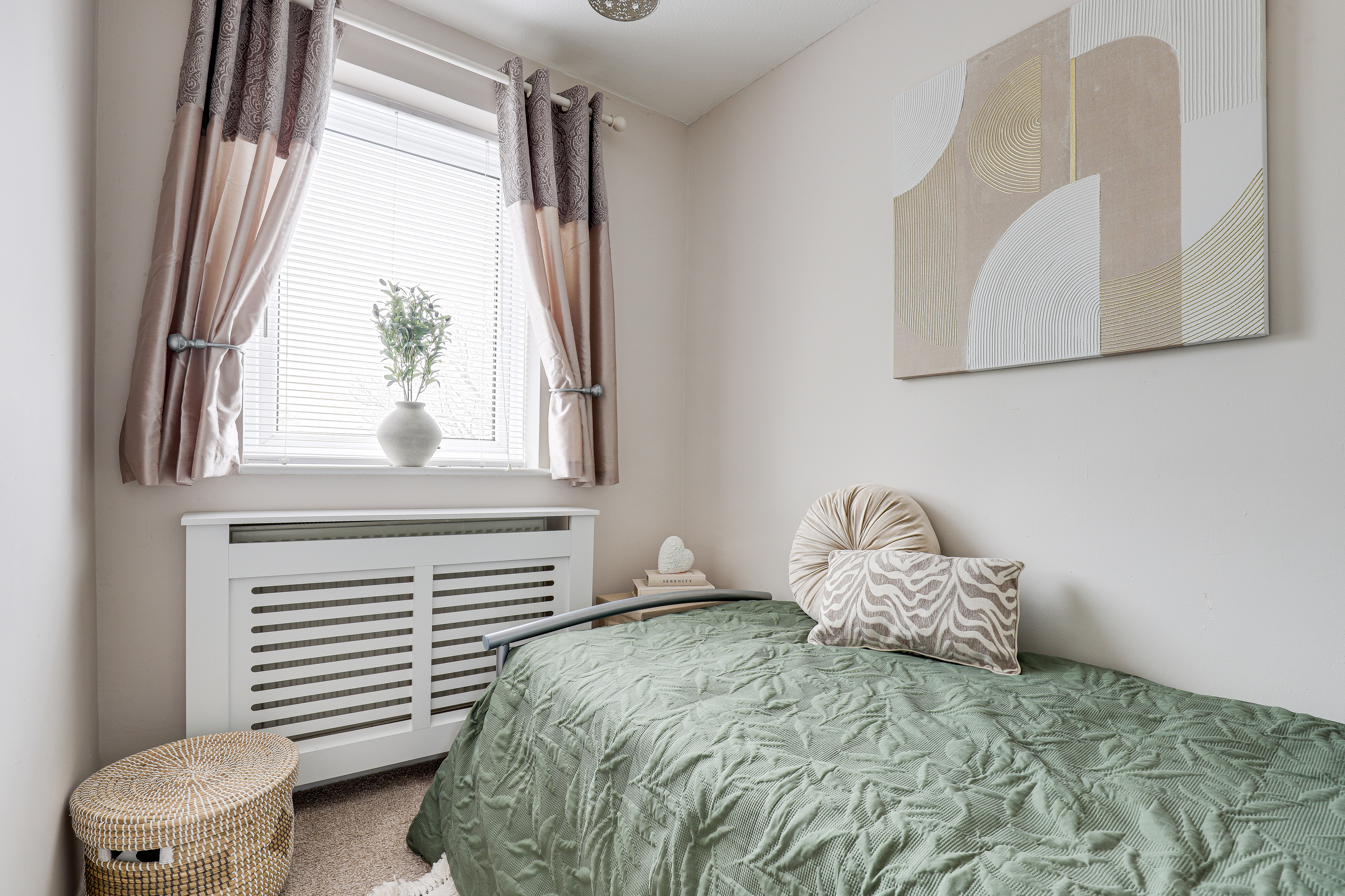 The second bedroom has carpeted flooring, a radiator, and a UPVC double-glazed window to the rear elevation.