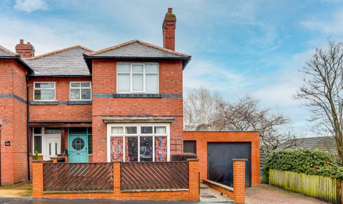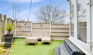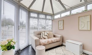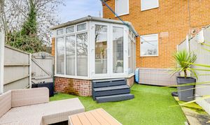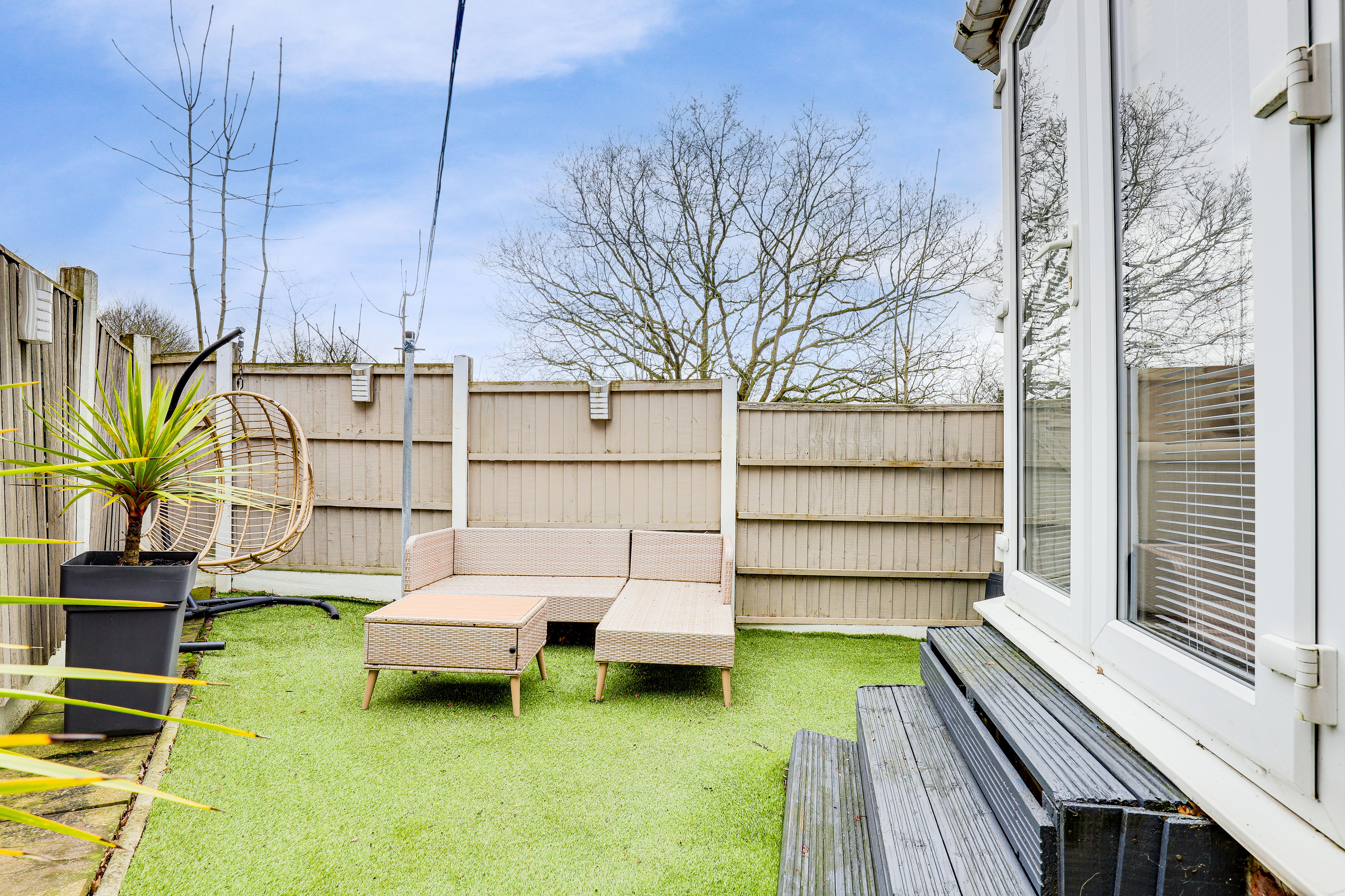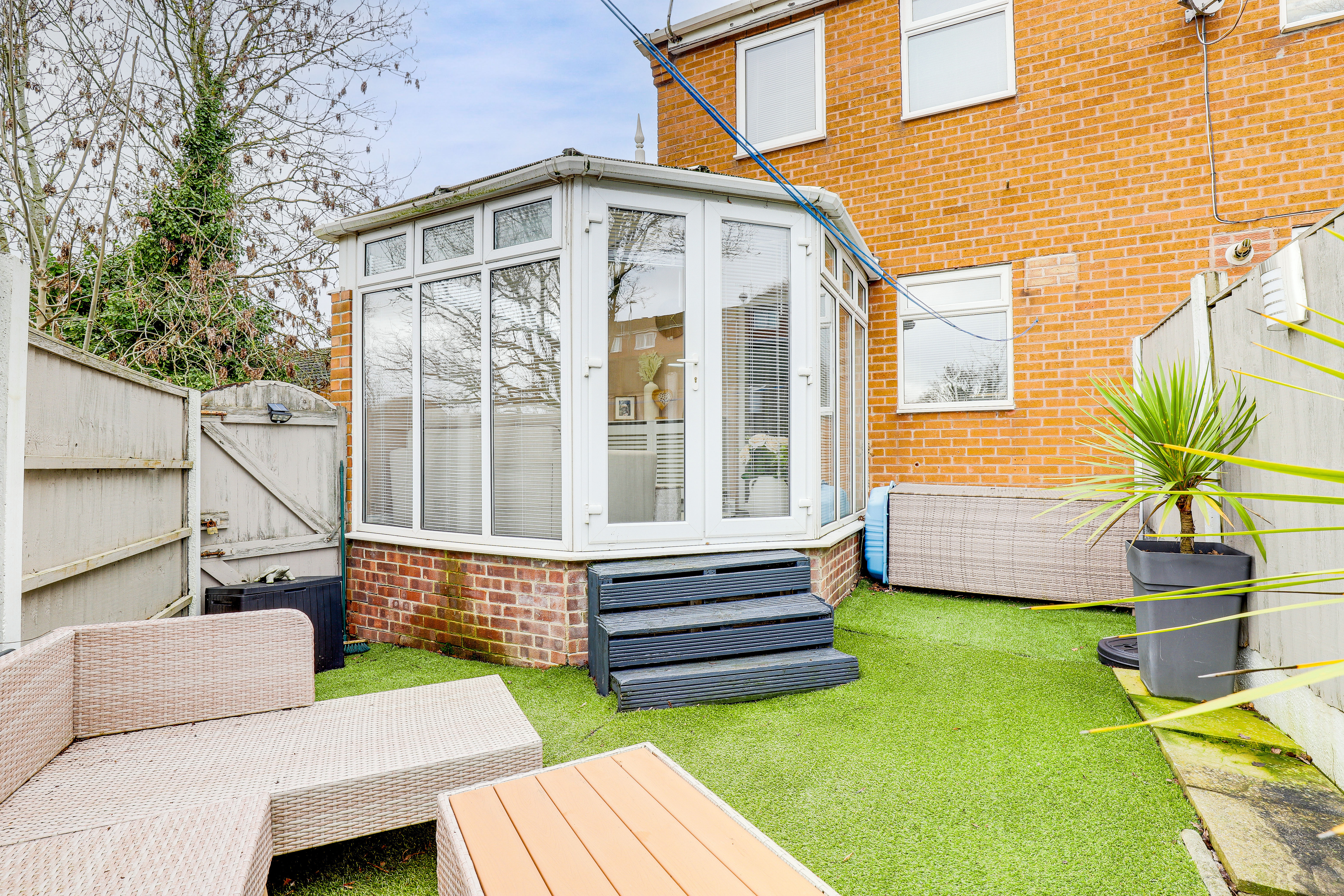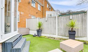 To the rear of the property is a low maintenance garden with an artificial lawn, partially paved borders, decked stairs to the conservatory, gated access, and fence panelled boundaries.