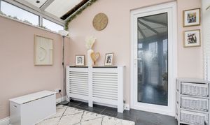 The conservatory has tiled flooring, a radiator, a polycarbonate roof, UPVC double-glazed windows to the side and rear elevations, and double French doors leading out to the rear garden.