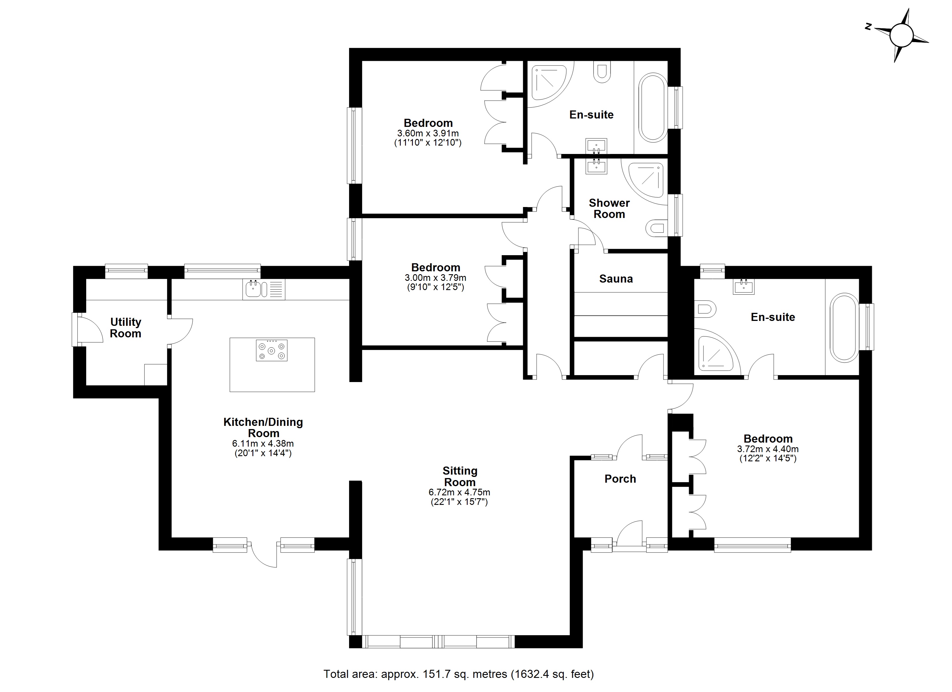 Entrance Hall | Kitchen/Dining/Living Room | Utility Room | Principal Bedroom with En-suite | Bedroom | Shower Room | Sauna