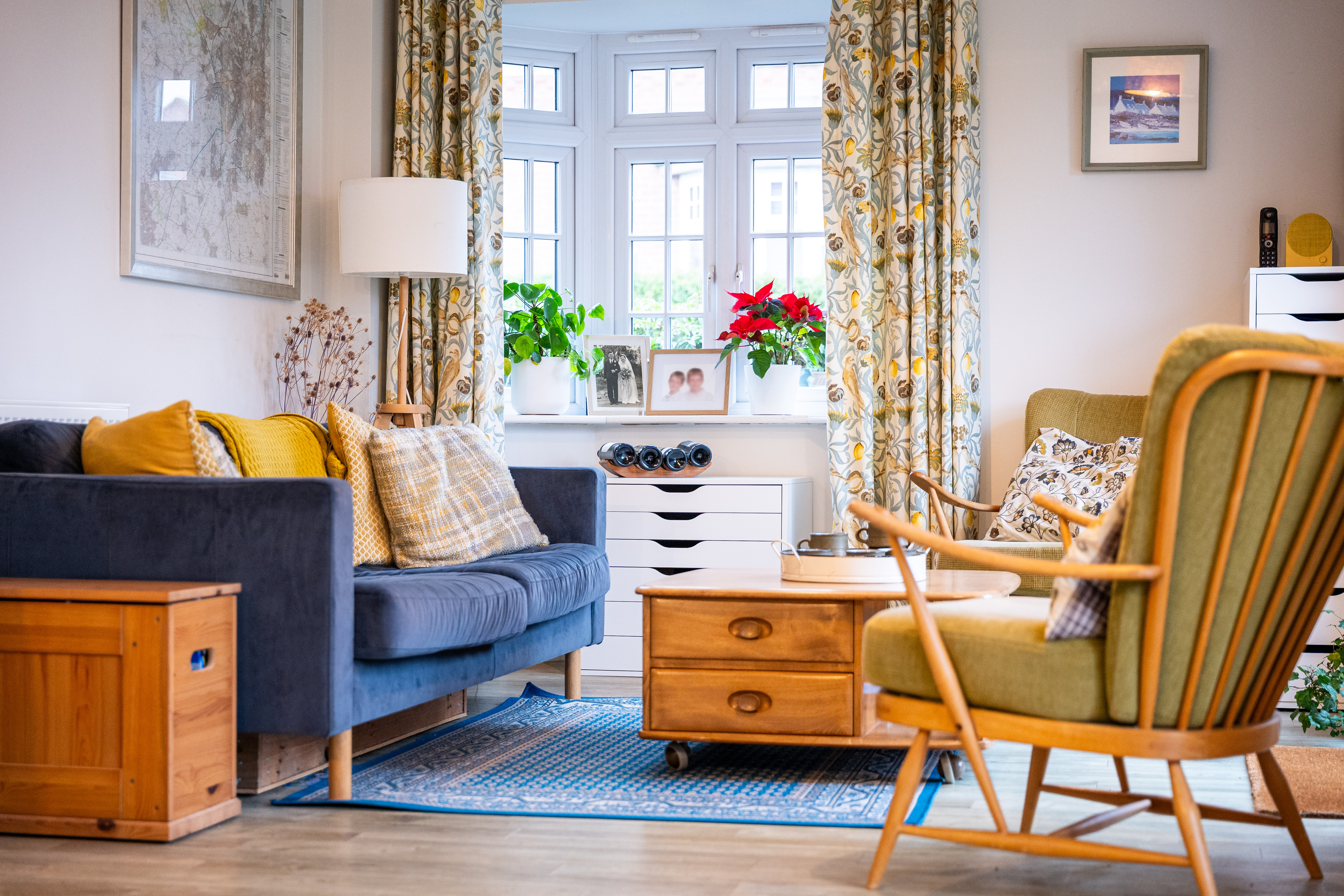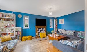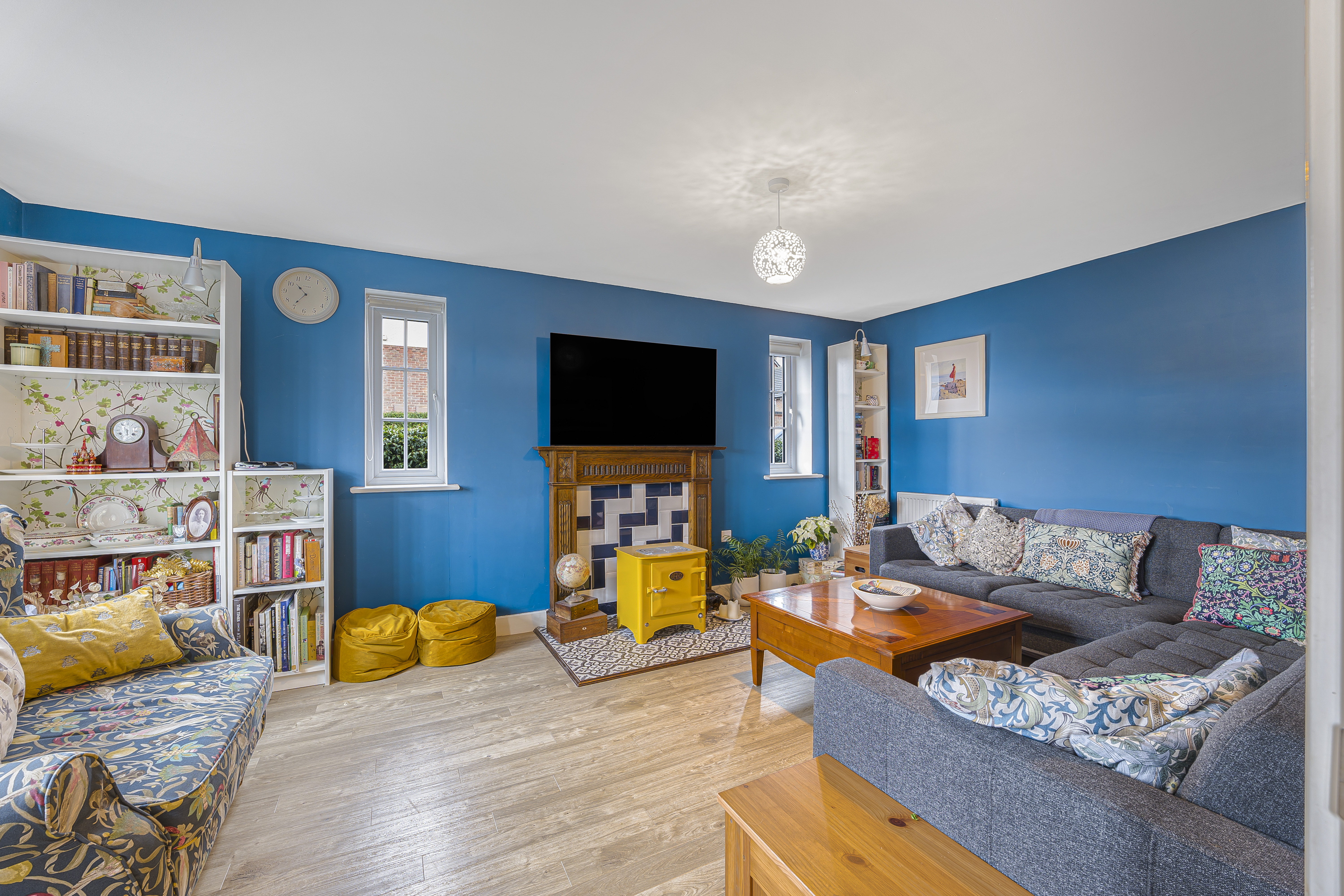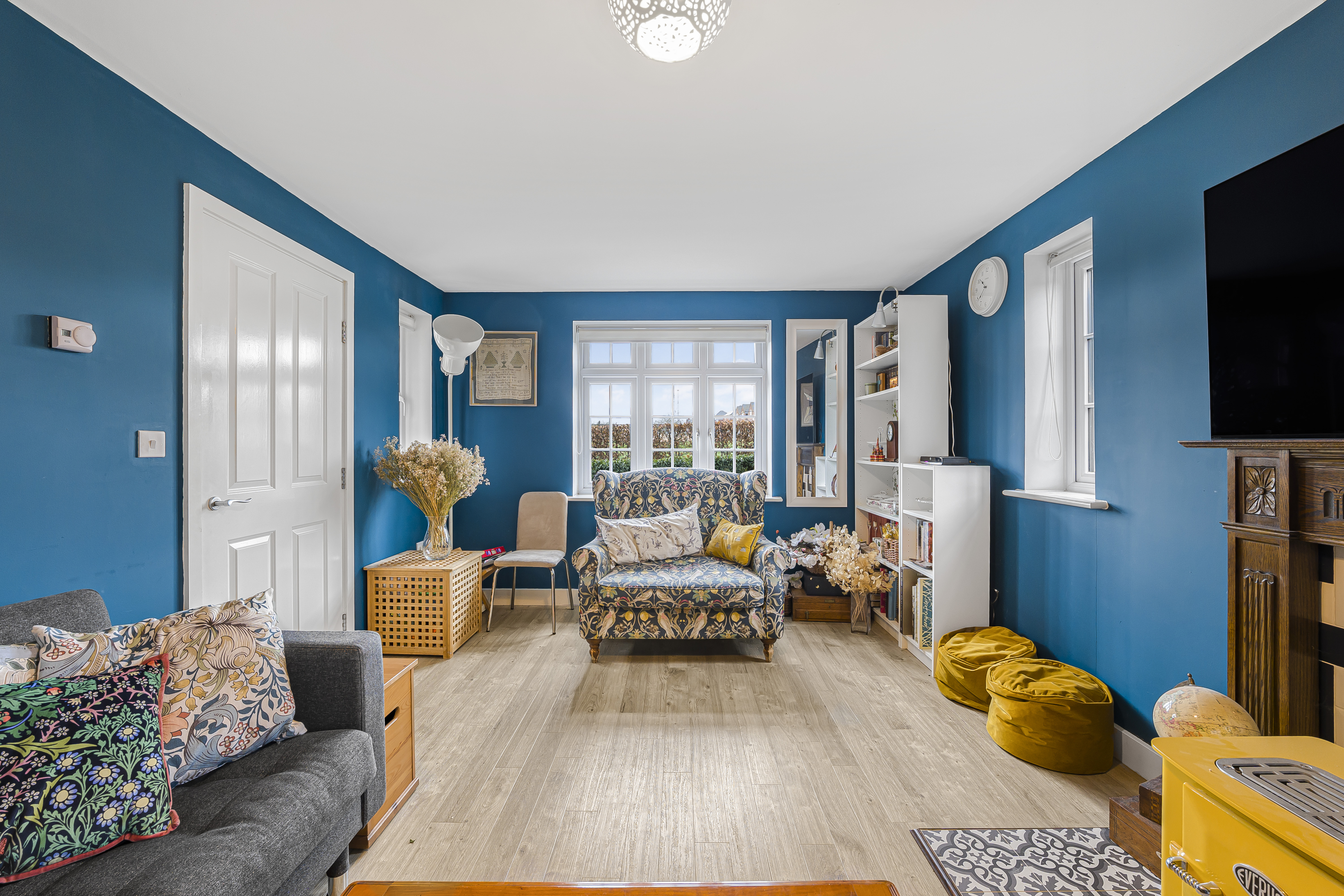 A bright and welcoming reception room featuring windows to both the front and side aspects, two radiators, a TV point, and an electric feature fire.